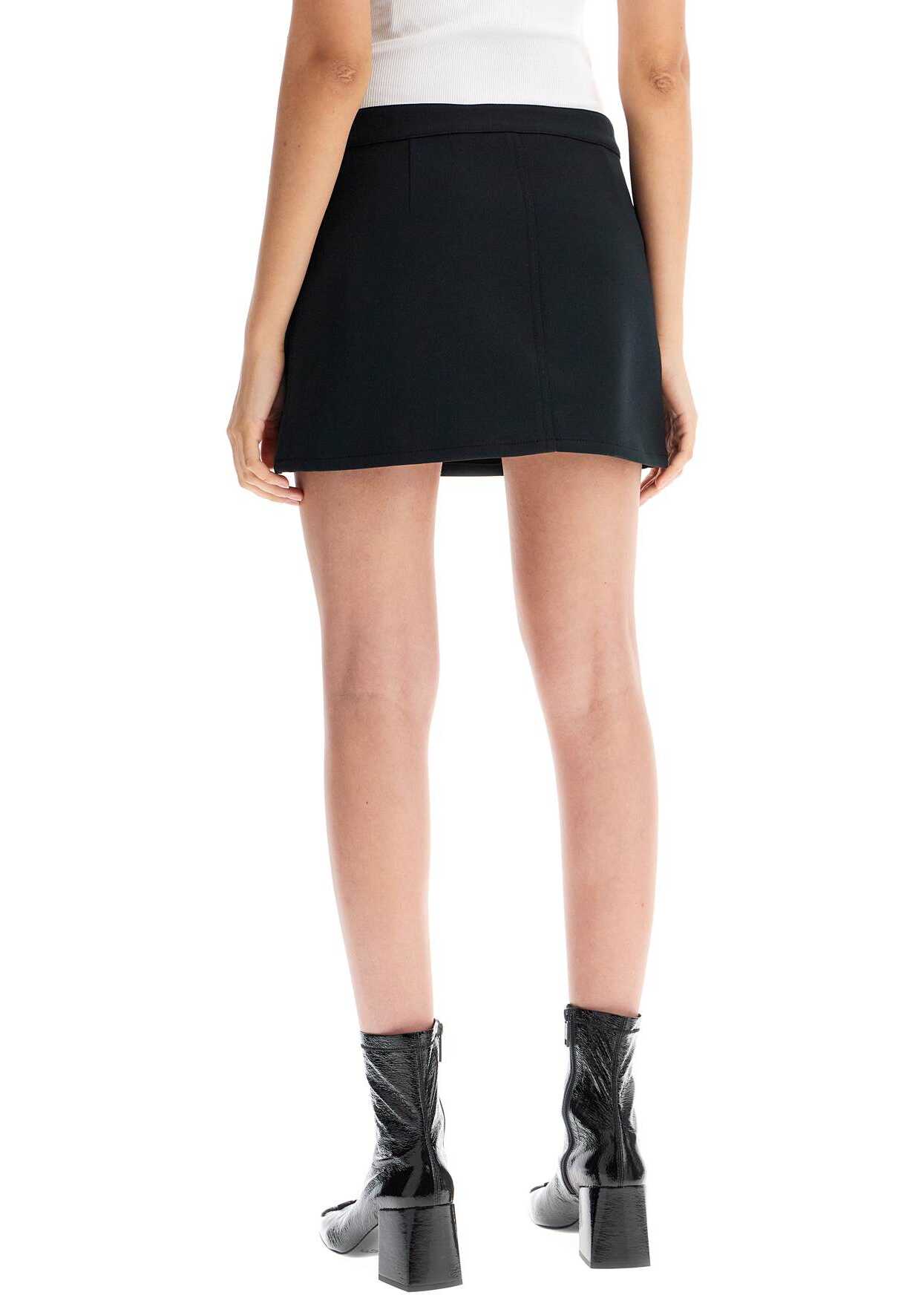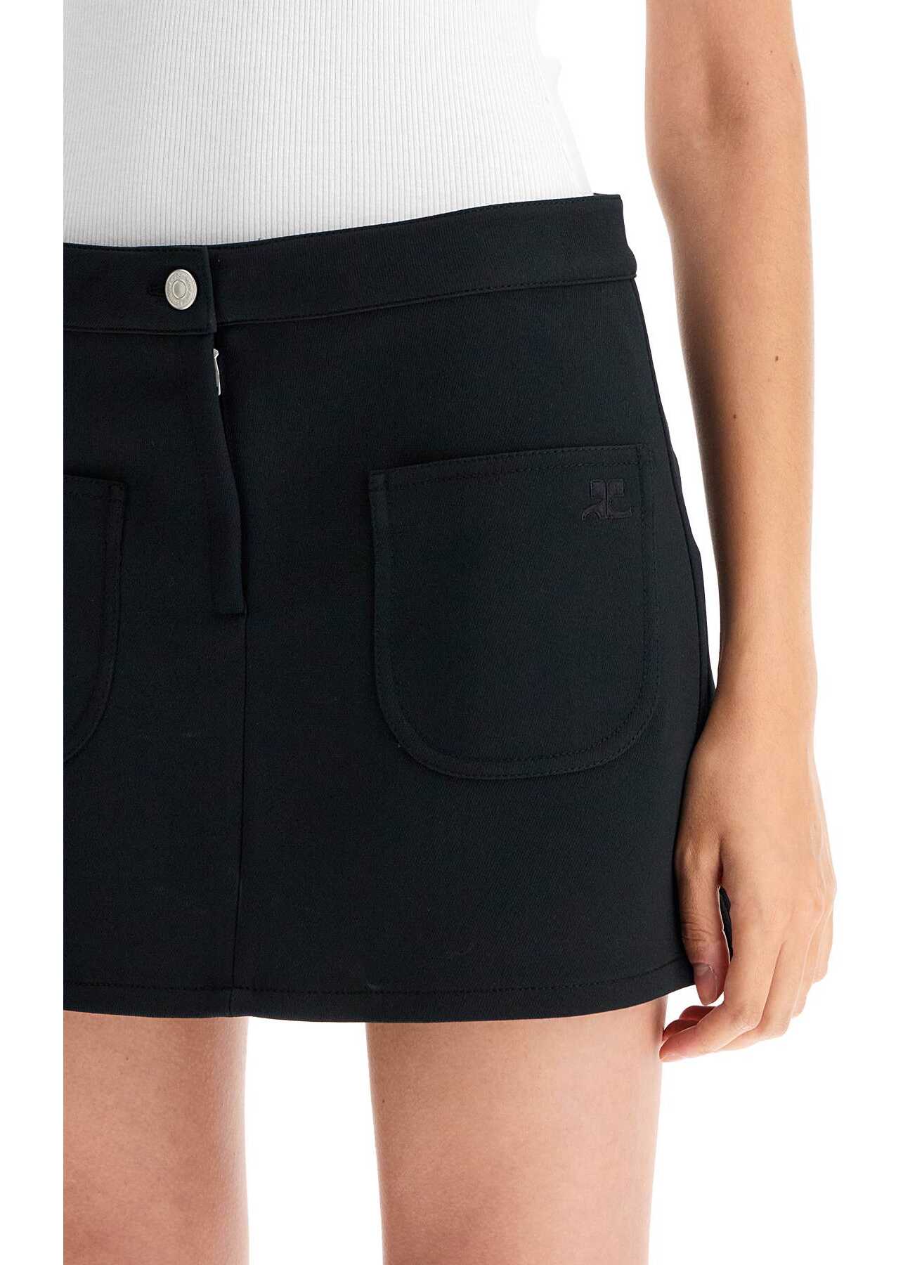 This Courrèges mini skirt is made of technical twill with two front patch pockets, one of which is embroidered with a tonal AC logo detail. It has a front button closure with hidden zip. The model is 177 cm tall and wears a size FR 36.