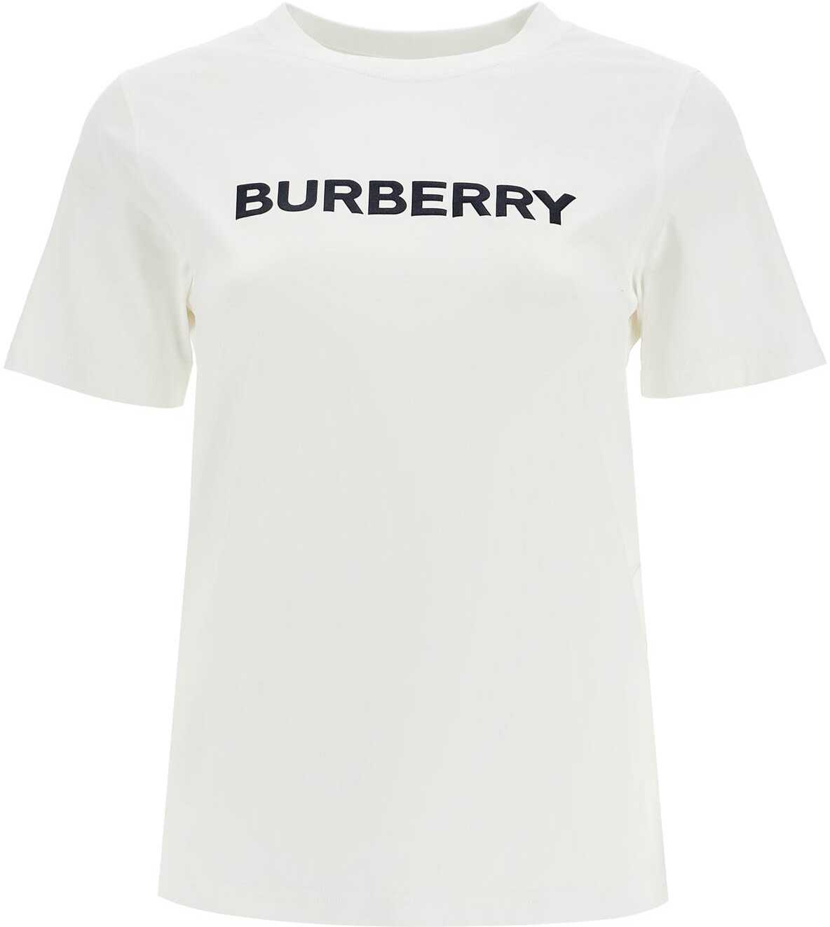 A short-sleeved T-shirt in soft organic cotton jersey printed with Burberry lettering across the chest. It comes in a regular fit with a straight silhouette and a ribbed crew neck. Our model is 177 cm tall and wears a size XS.