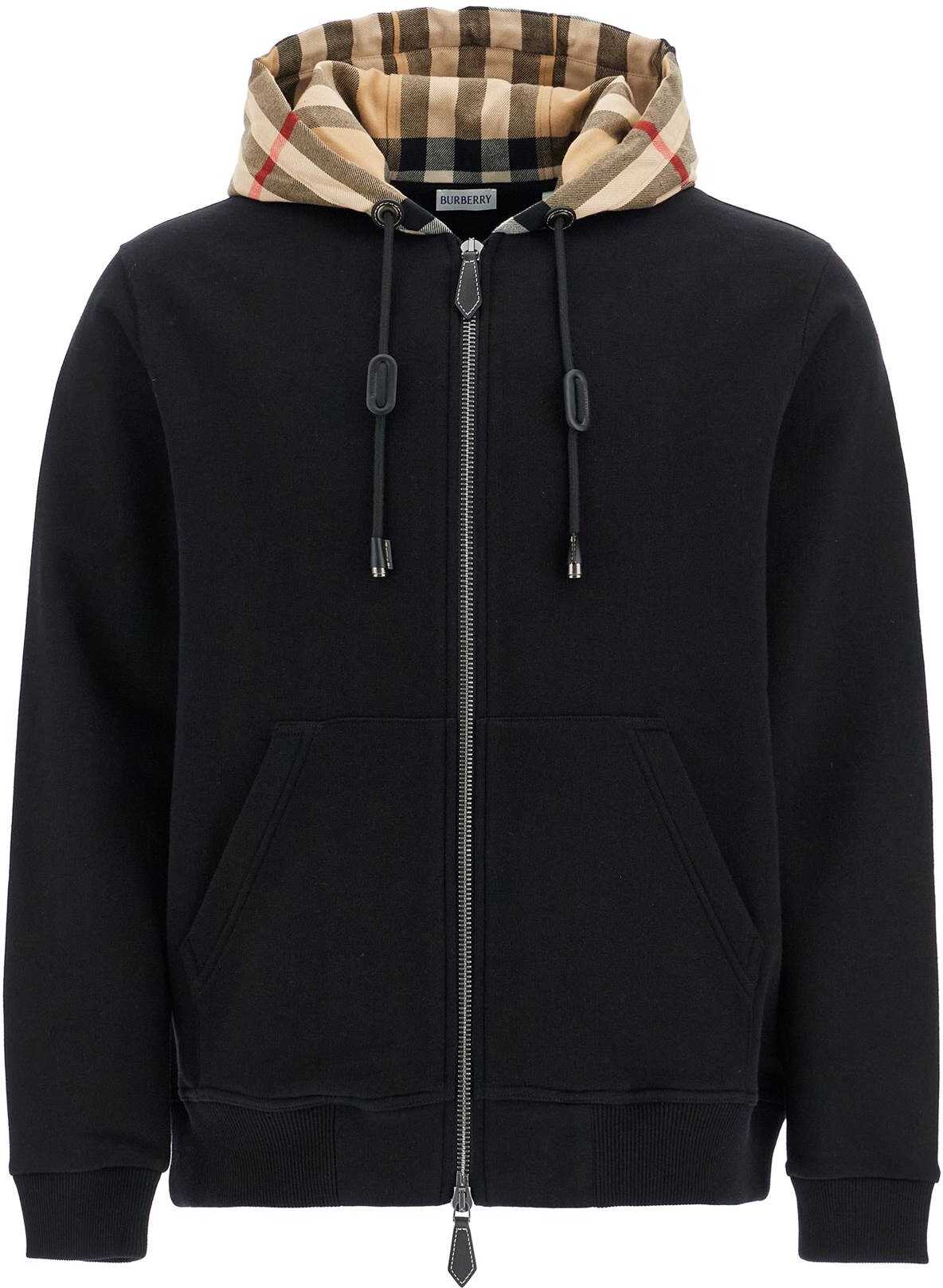 Crafted in loopback organic cotton fleece, this sweatshirt boasts a zip closure, adjustable cotton flannel hood in Burberry Check and a front kangaroo pocket. It comes in a relaxed fit with ribbed cuffs and hem. The model is 187 cm tall and wears size L.