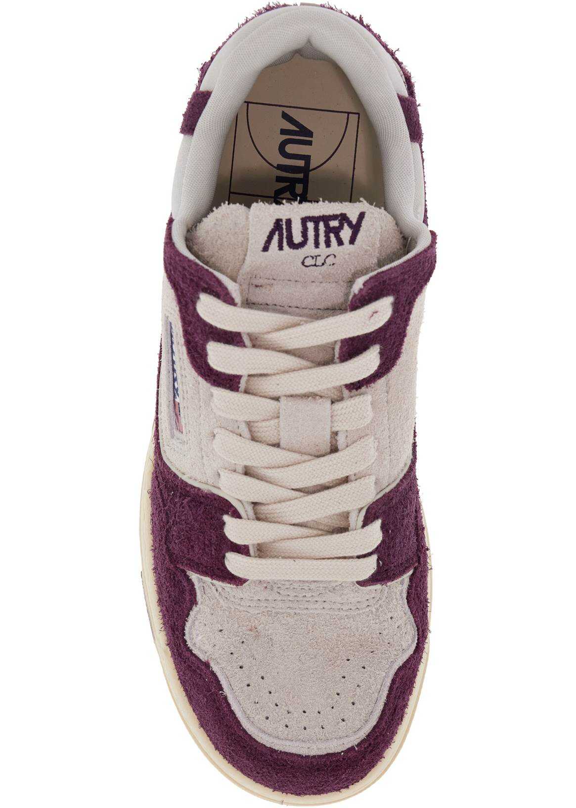 The Autry CLC sneakers are made of two-tone suede leather and feature the iconic logo fabric inlay on the outer side. They have a perforated toe, a logo patch on the tongue, and a rubber monogram on the back. The interior is lined with mesh, and the removable insole is made of leather. The rubber sole has the distinctive monogram imprinted on the side.