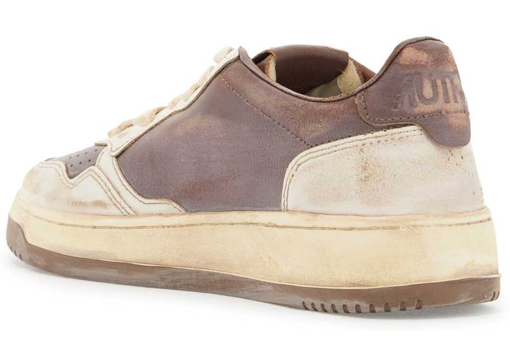 The AUTRY Medalist Low Super Vintage sneakers are made of worn-effect color block leather with perforations on the toe, an embossed logo on the heel tab, a fabric logo inlay on the side and an embroidered logo on the tongue. They feature a lace-up closure with cotton laces, a leather and sponge lining, a removable leather insole, and a rubber sole with a raised logo on the side. They also come with spare laces.