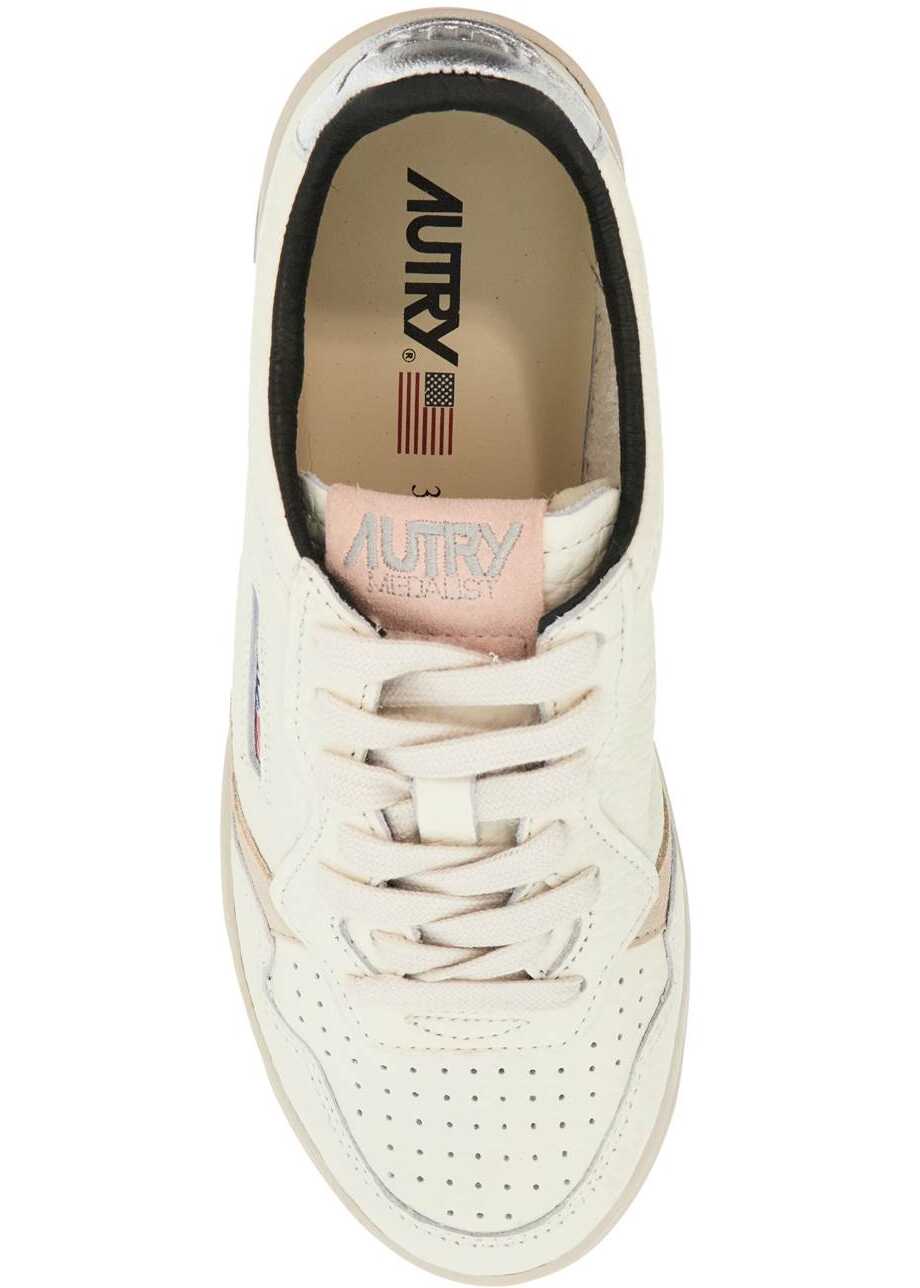 The Autry Medalist sneakers are made of embossed leather with contrasting detail and spoiler. They feature a classic logo inlay on the side, front lacing, suede logo patch on the tongue, and a sponge interior with a removable leather insole. The sole is made of rubber.