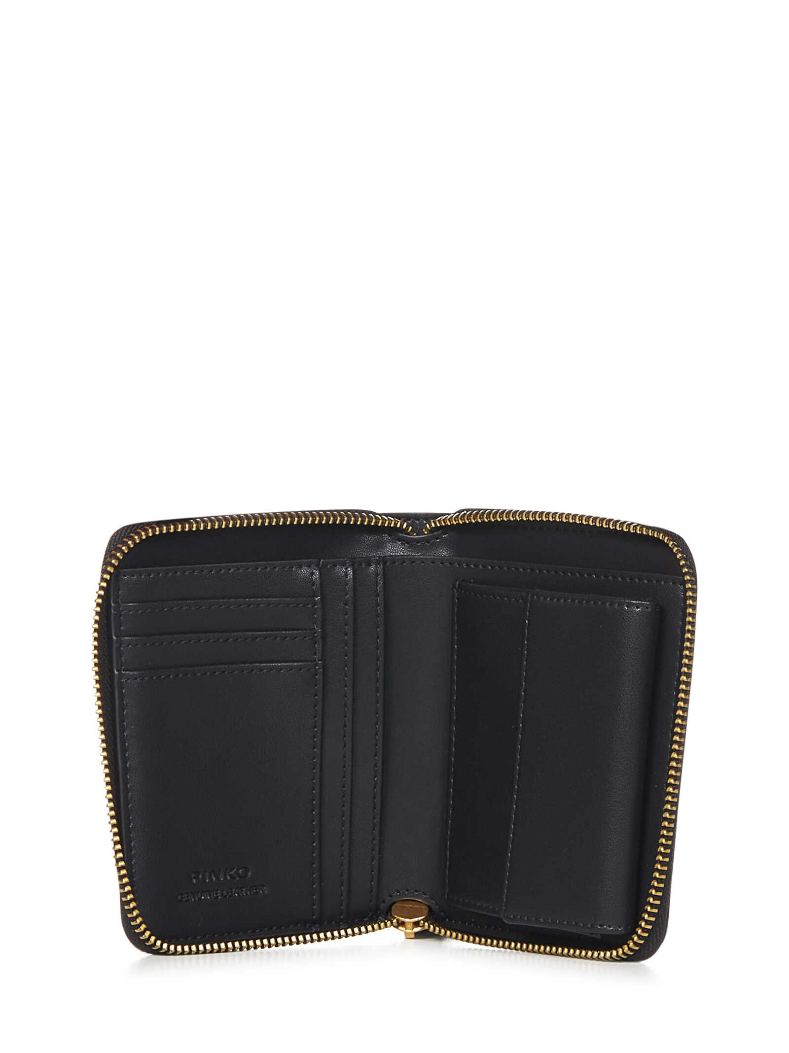 Elevate your accessory game with the PINKO Black Wallet. Crafted from luxurious cowhide leather, it features a stylish zip-around design and a chic logo plate. Perfectly sized at 10cm x 12cm, it combines elegance and functionality for the modern woman.