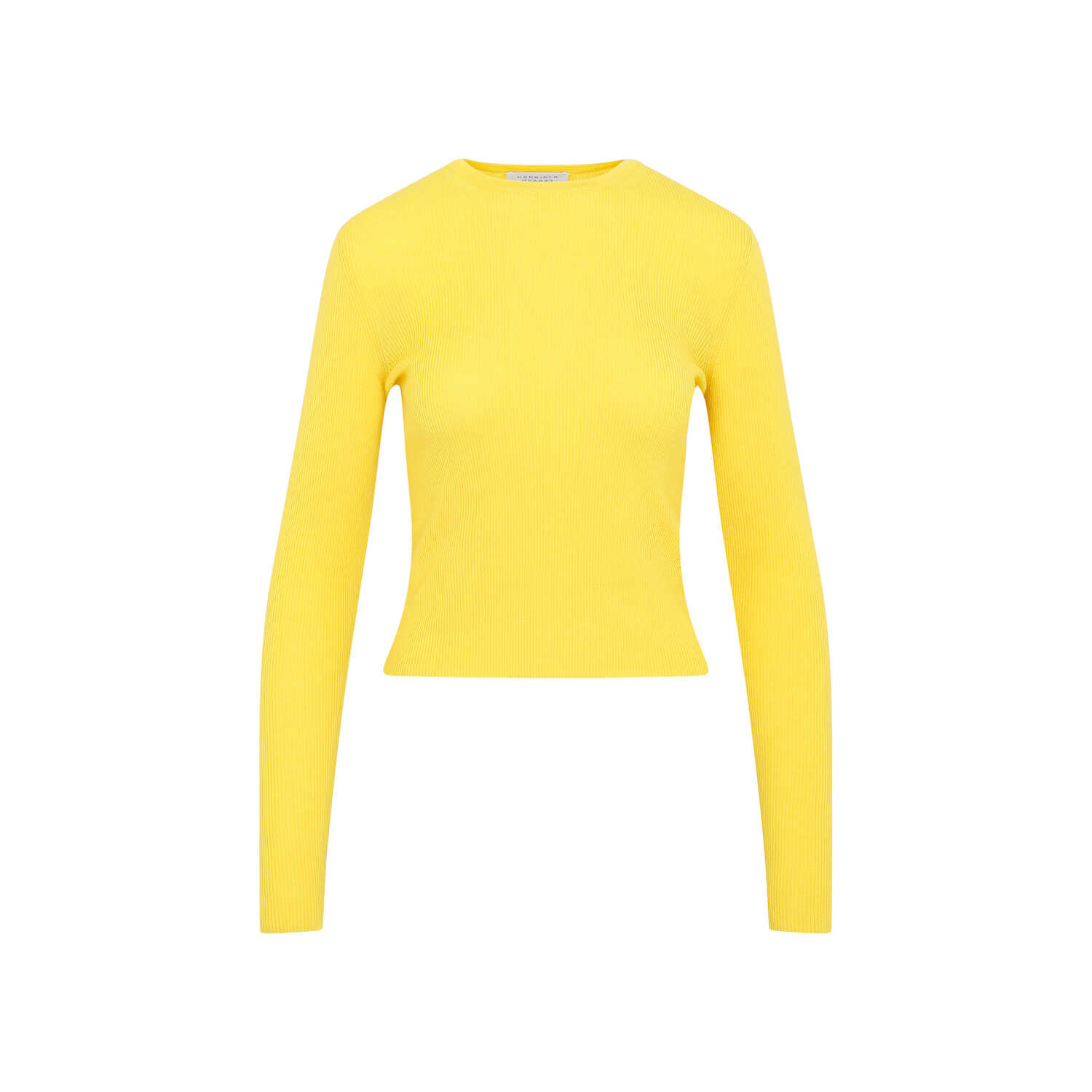 Gabriela Hearst Yellow Merino Wool Kaia Top. Crafted in pure cadmium yellow merino wool. Crewneck, long sleeves, ribbed construction, straight hem.
