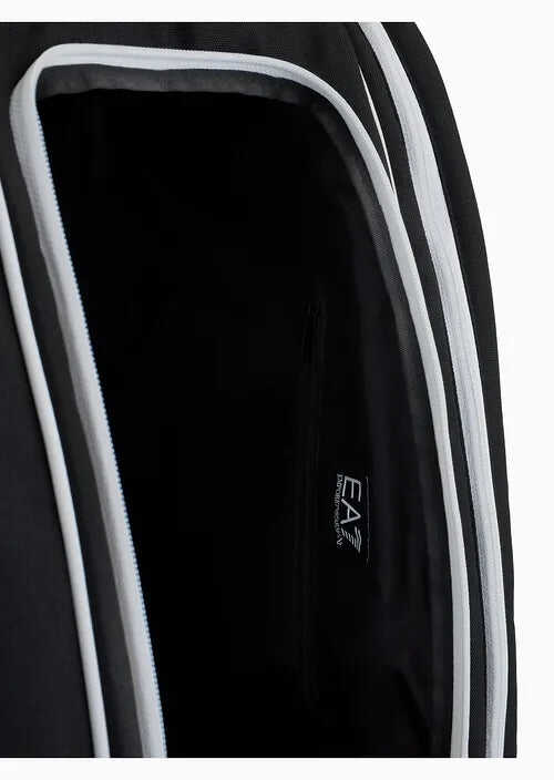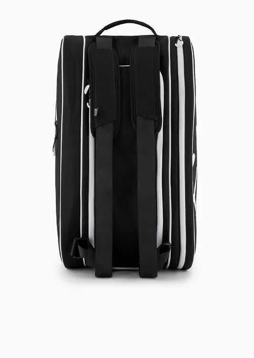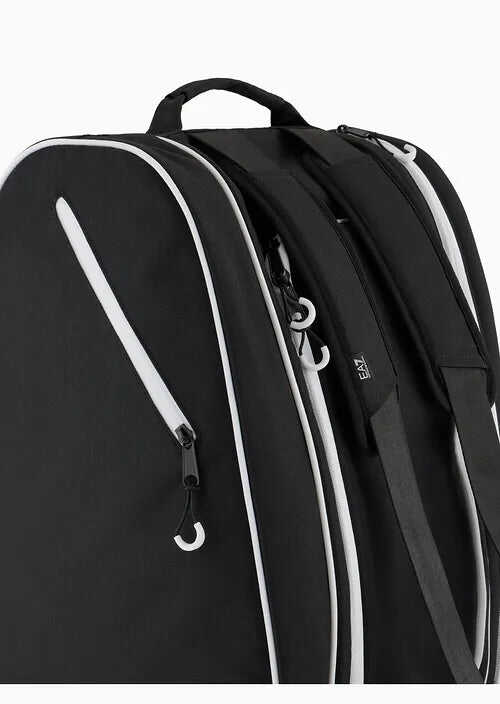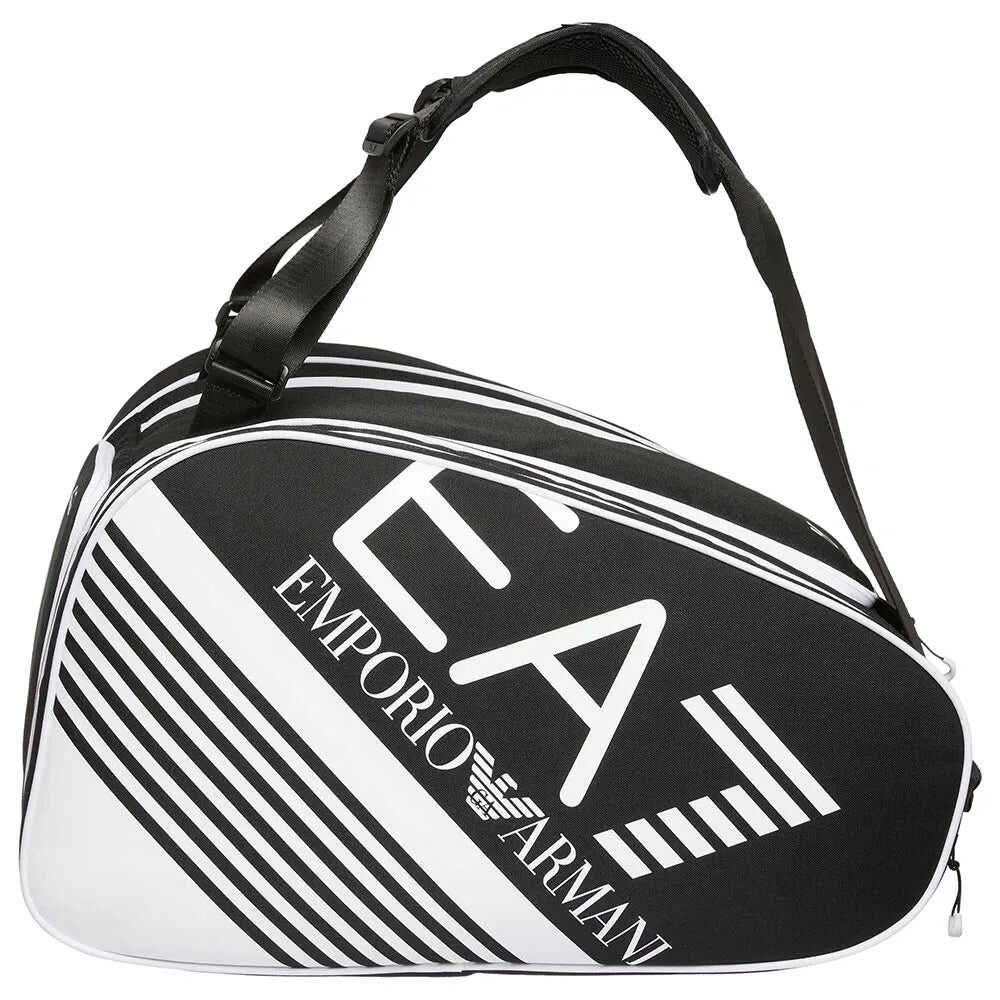 Elevate your game with the EA7 Padel Bag! This sleek black bag features multiple compartments for rackets and shoes, an iconic logo, and comfortable padded straps. Perfect for athletes seeking style and practicality on and off the court.