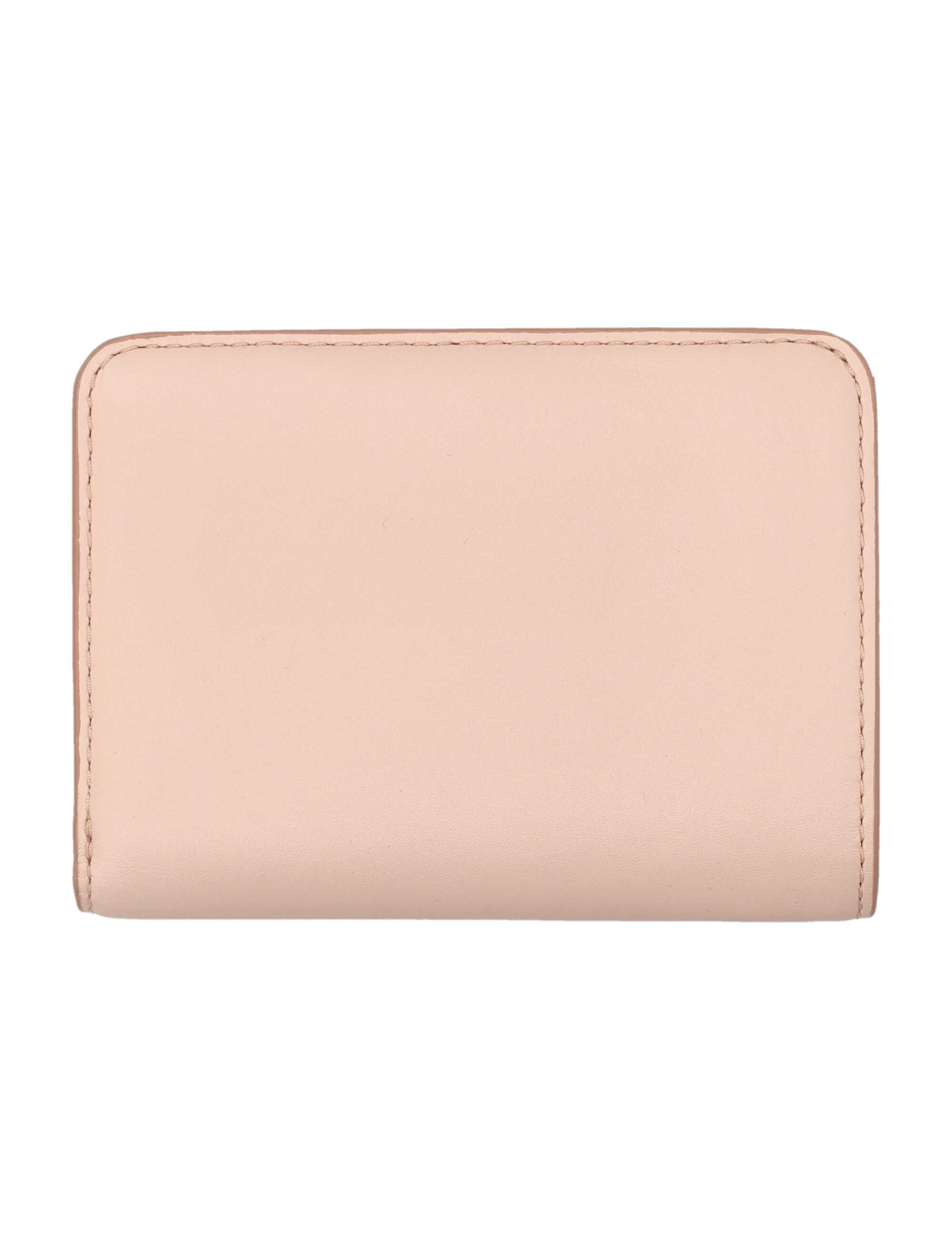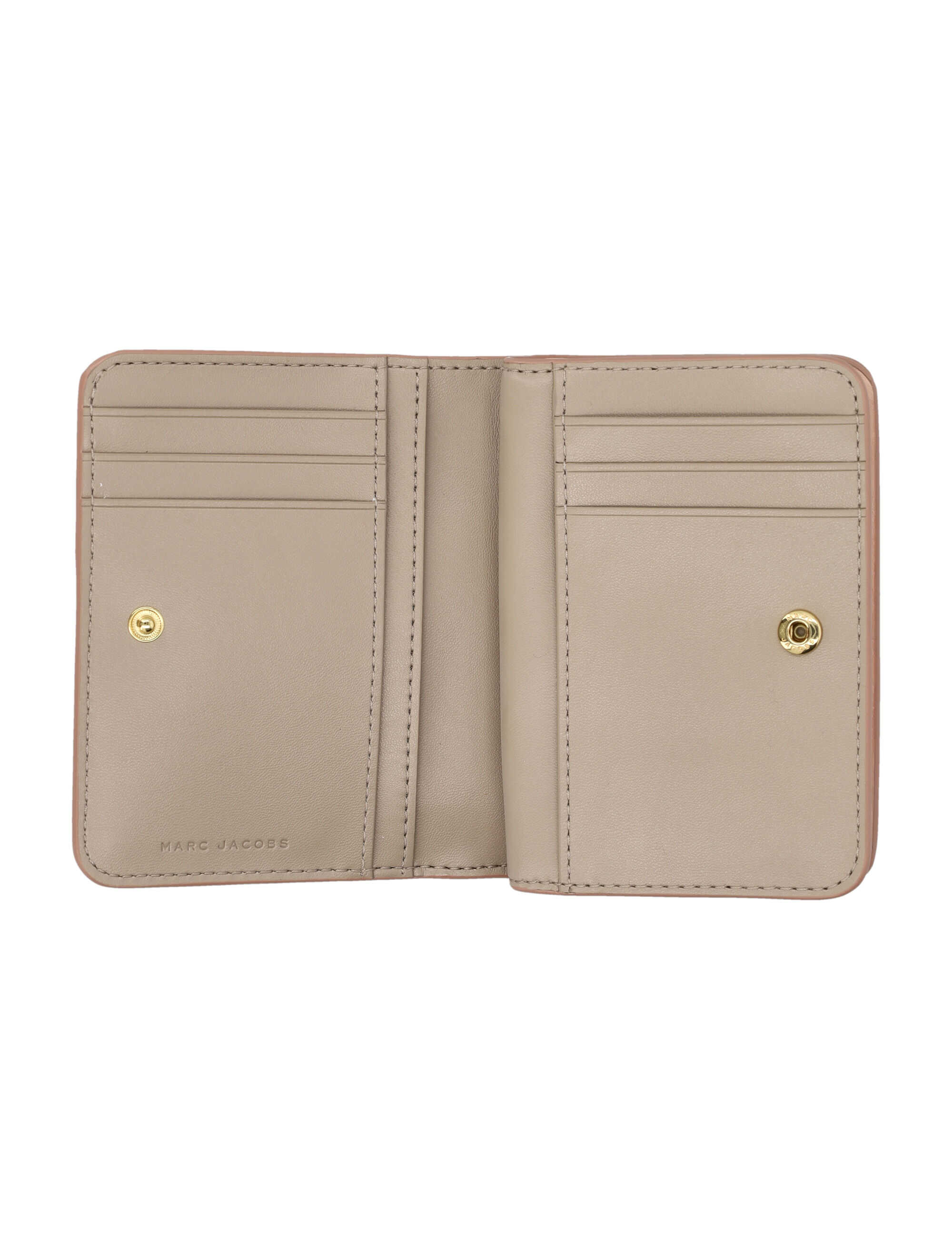 Elevate your style with the Marc Jacobs mini compact wallet in elegant rose. Crafted from 100% cow leather, it features an embossed logo, snap button closure, and multiple card slots. Perfect for the chic woman on the go!