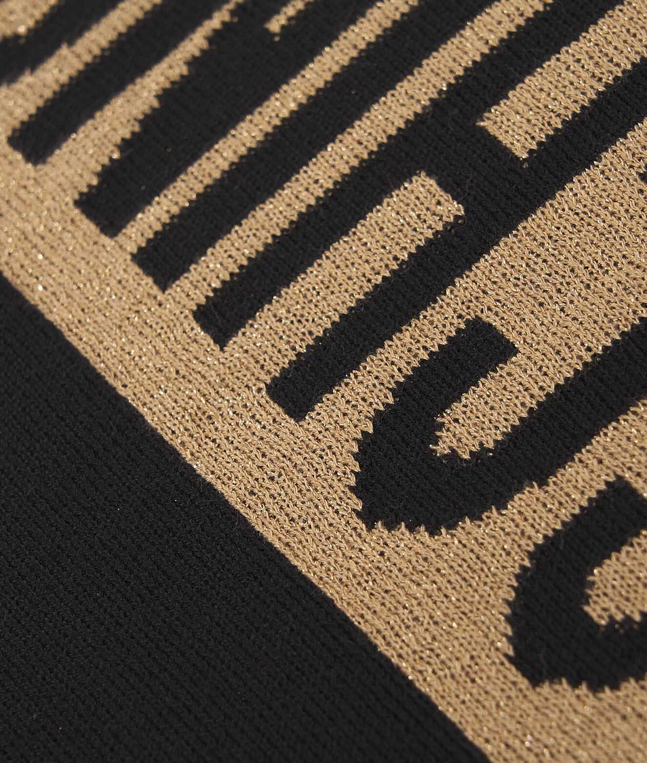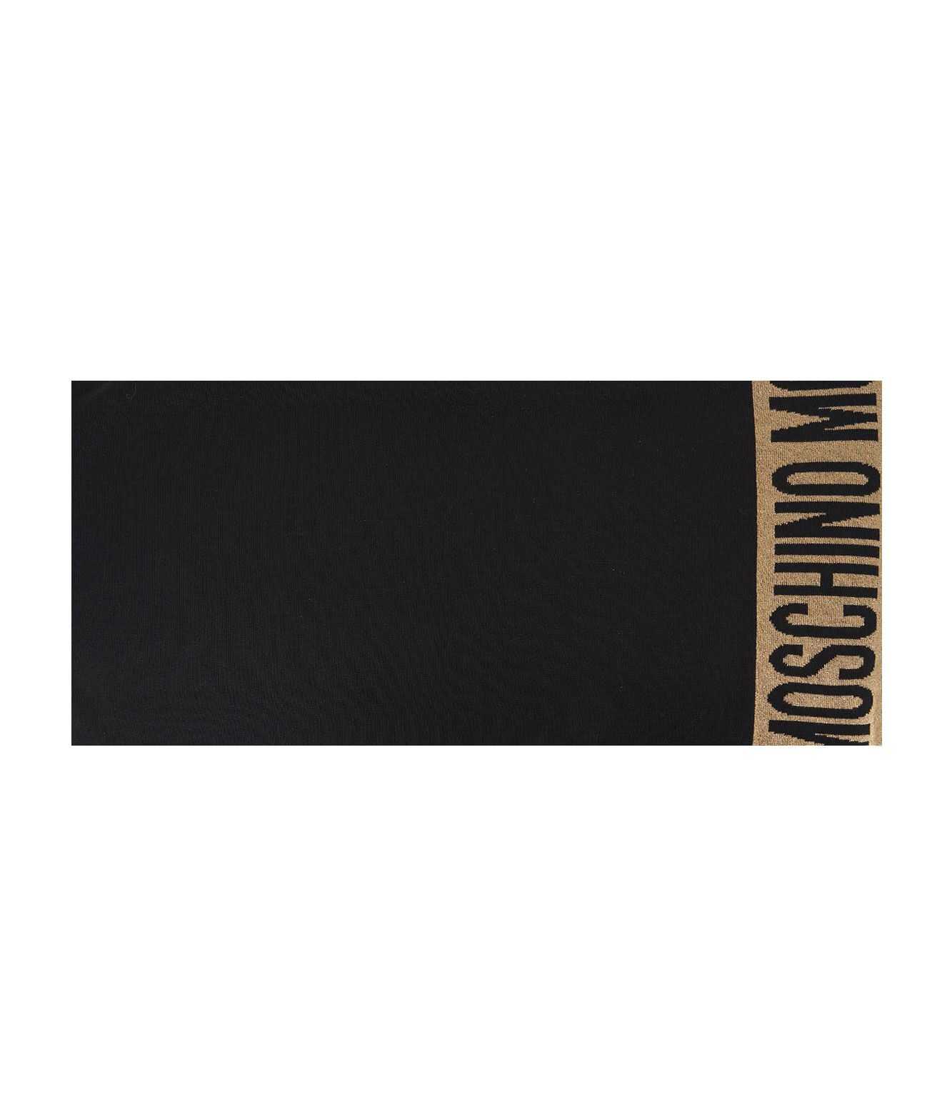 Add a touch of glamour to your outfit with this elegant black scarf from MOSCHINO. Made with a luxurious blend of Wool, Viscose, Polyamide, and Polyester, featuring a chic logo and glitter design. Perfect for day or night, this scarf is a must-have accessory for any fashion-forward woman. Dry clean recommended. Dimensions: 128 x 68 cm.