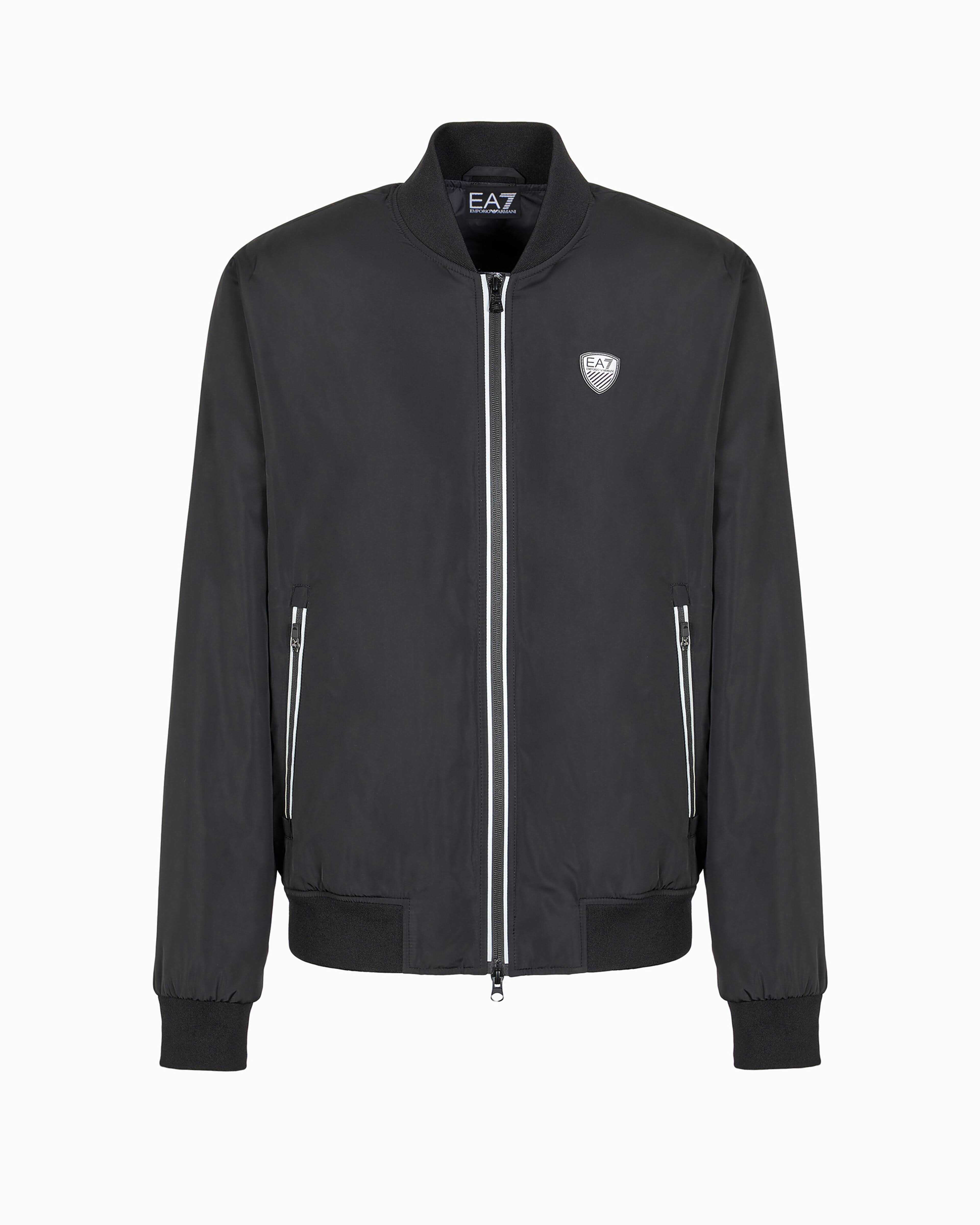 COMPOSITION: 98% Polyester, 2% elastane. DESCRIPTION: Regular fit. Knitted baseball collar. Zip closure. Long sleeves. Two front pockets. Shield patch with EA7 logo. . MAIN COLOUR: black
