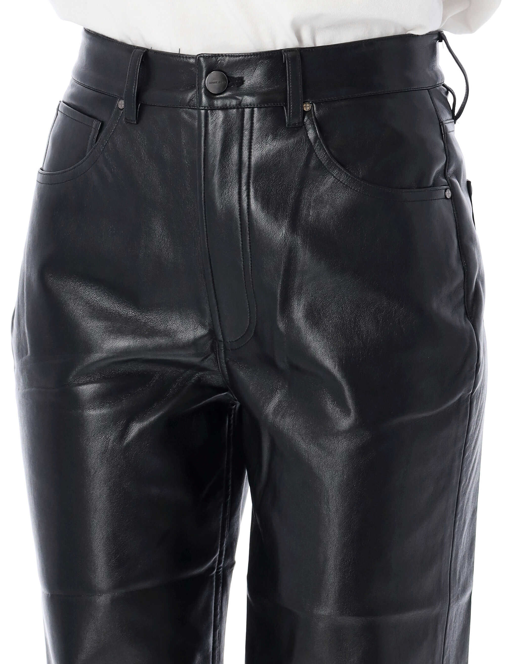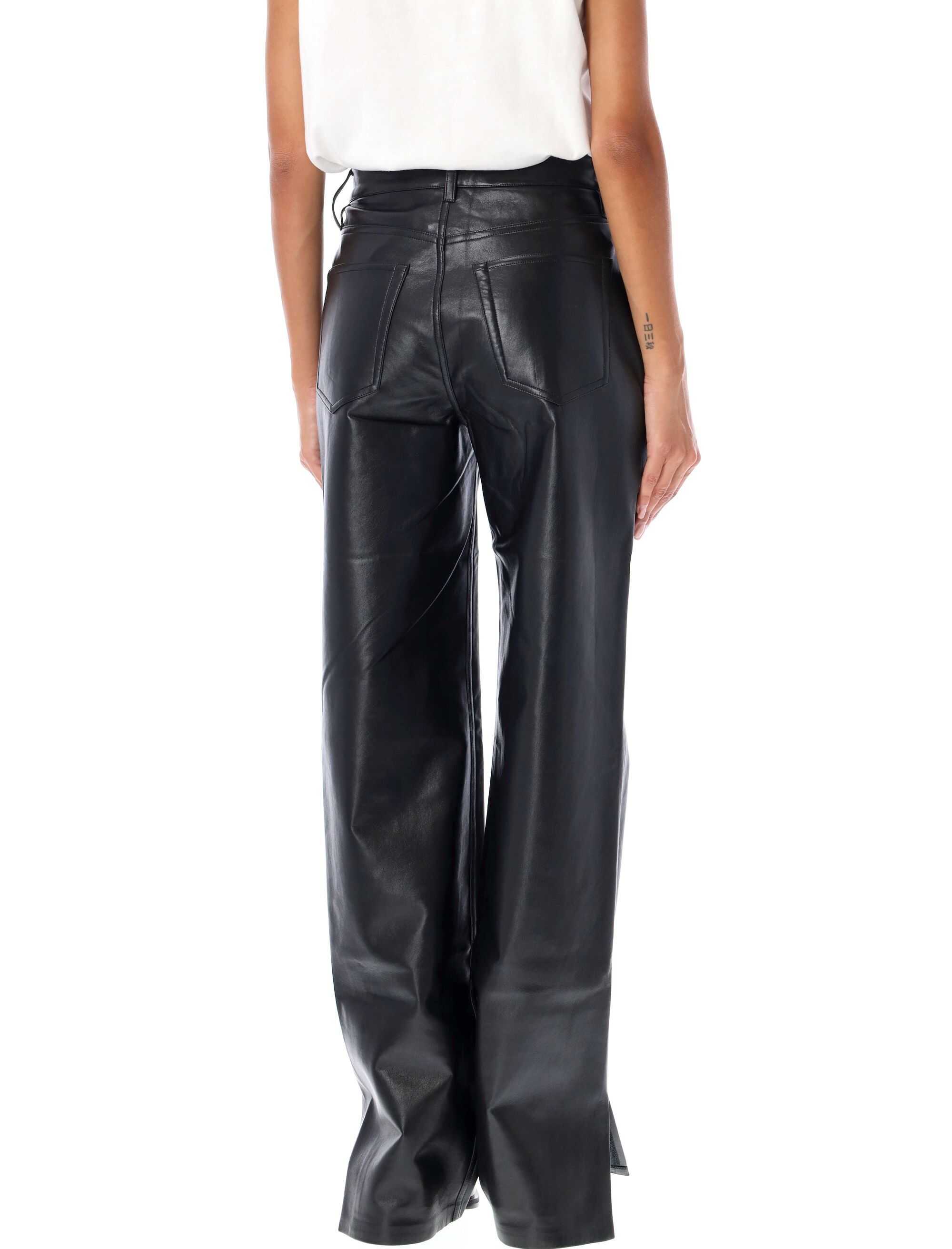Elevate your style with these chic Rowy eco leather pants by ANINE BING. Made from a luxurious blend of leather, polyester, and polyurethane, these pants feature a high-waisted fit, wide-leg silhouette, and classic five-pocket design. Perfect for day or night, these pants will become a staple in your wardrobe. Get yours now and make a fashion statement!
