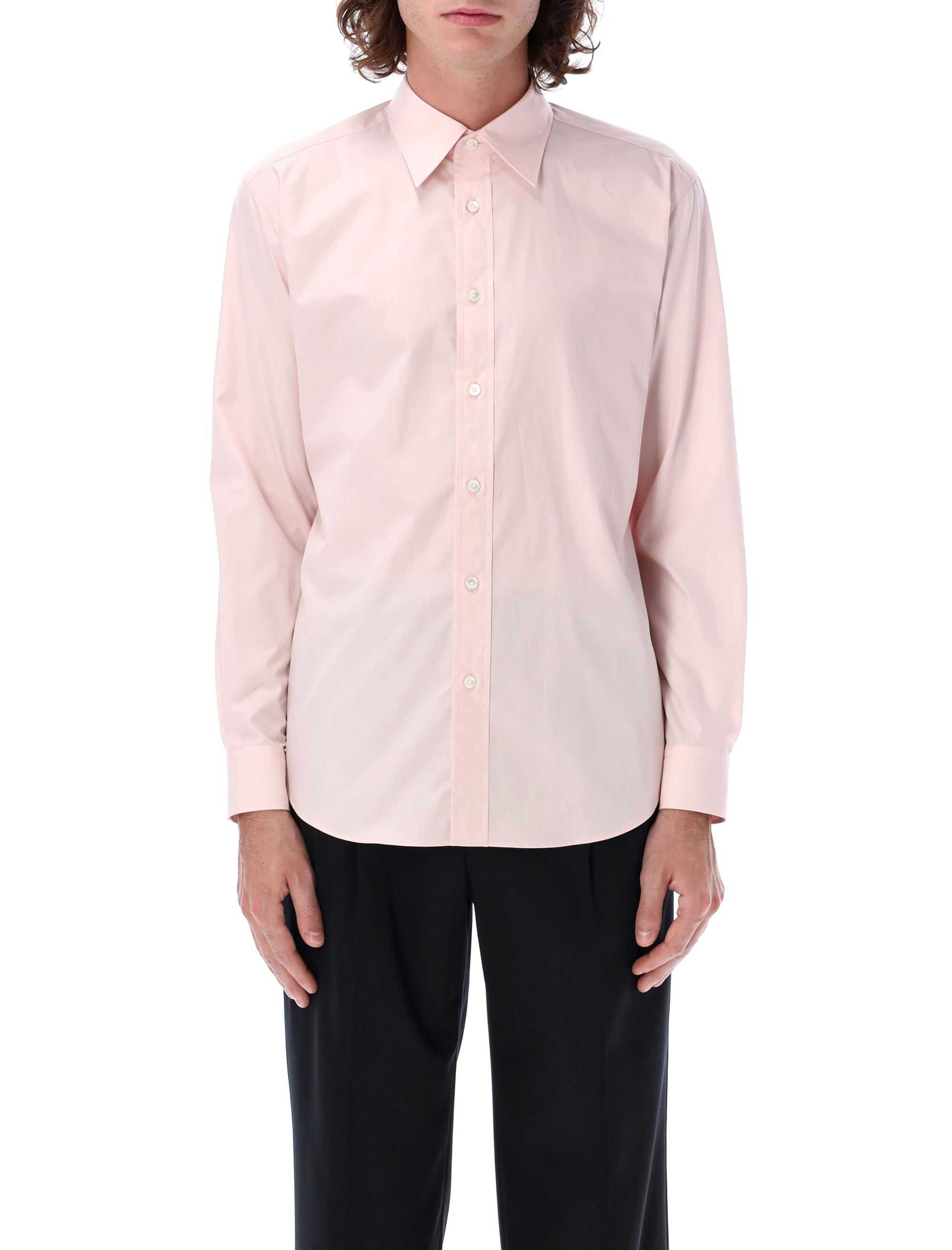 Elevate your wardrobe with the High Count Finx Oxford Shirt by Auralee. Crafted from 100% cotton, this light pink shirt features a sophisticated point collar, long sleeves, and a stylish curved hemline, perfect for any occasion.