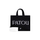 Patou Black Small Tote Bag. Black cotton, handle on top, fully lined. Cream organic cotton, Patou lettering logo and JP monogram in white. White embossed shoulder strap with gold buttons.