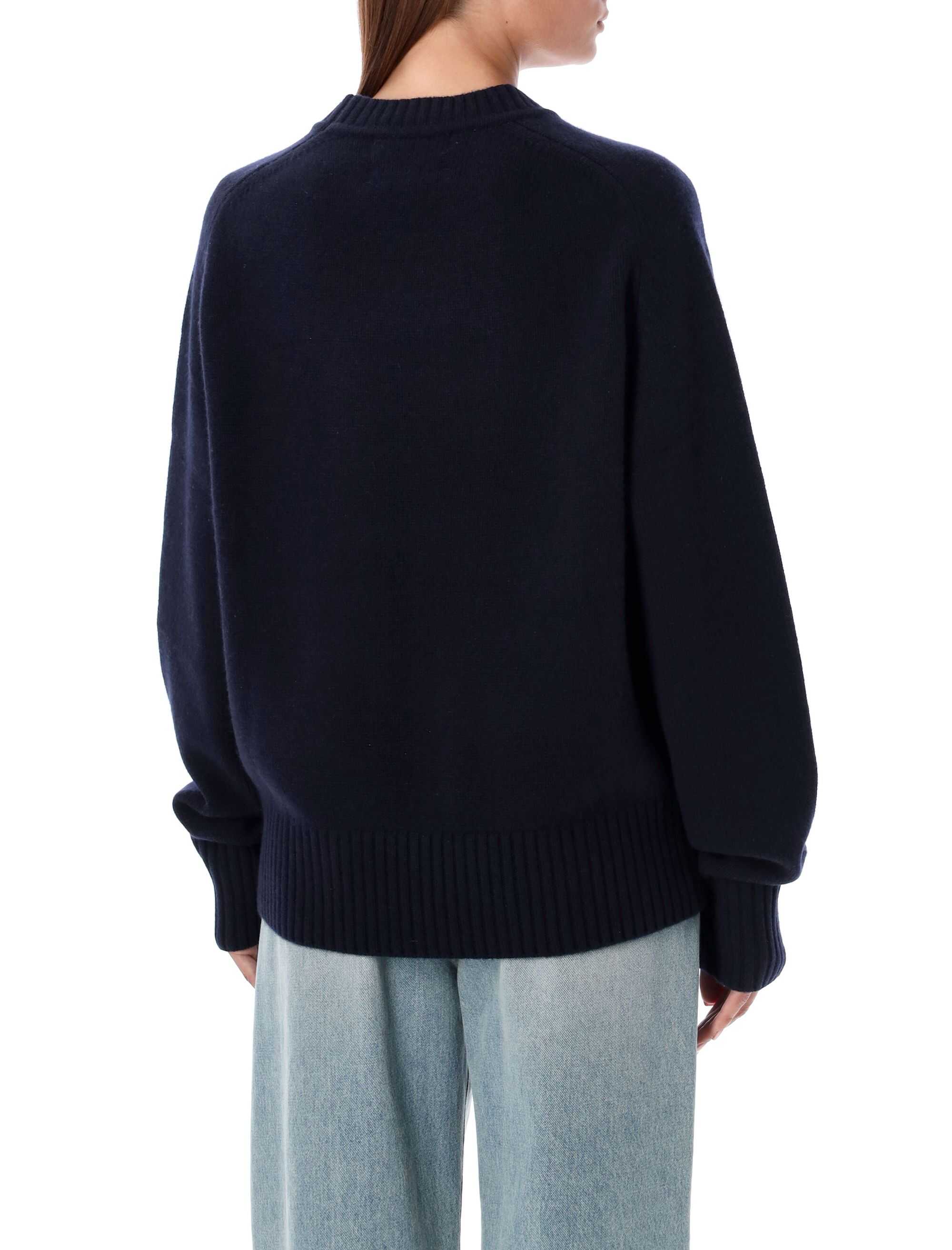 Stay cozy and stylish with this luxurious Borgeois crewneck by Extreme Cashmere. Made from 100% cashmere, this navy jumper features a classic ribbed crew neck, raglan shoulder, and ribbed cuffs and hem. Perfect for any occasion, this versatile piece is a must-have for your knitwear collection.