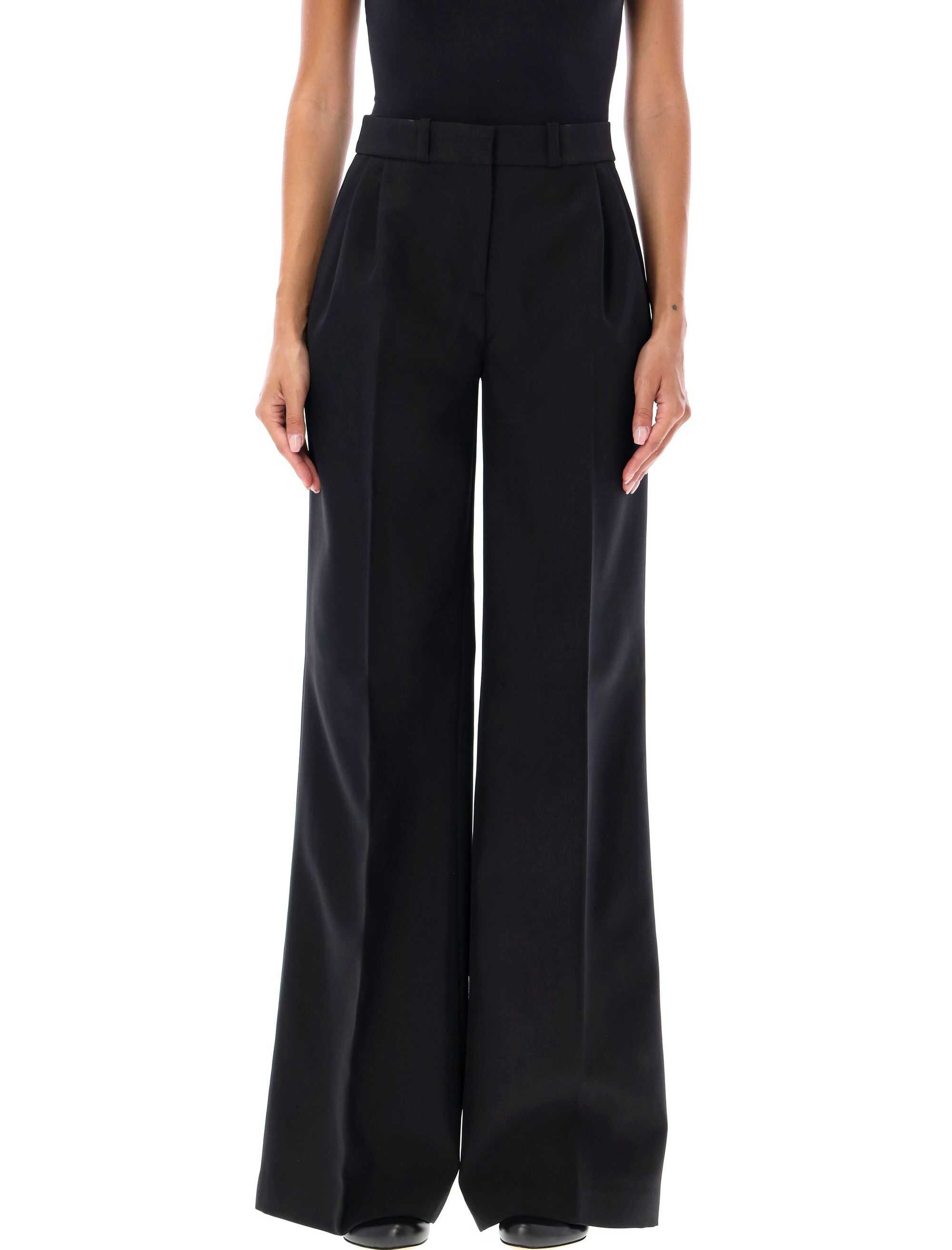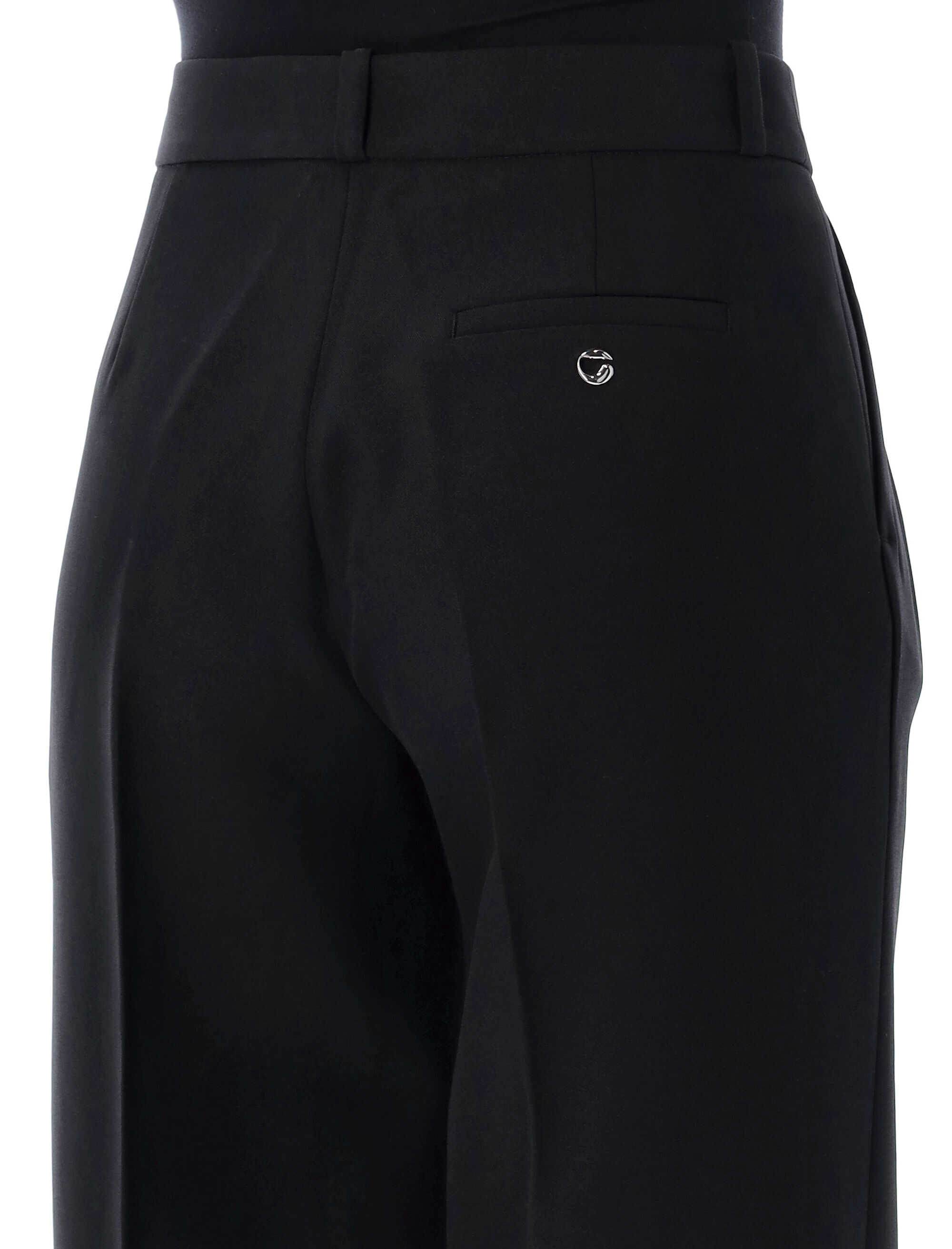 Elevate your style with these sleek and environmentally conscious wide leg tailored pants by COPERNI. Made from 100% recycled polyester, these pants feature a high-waisted fit, wide-leg design, and functional details such as front zipper with hook-and-bar closure. Complete your look with the perfect blend of fashion and sustainability.