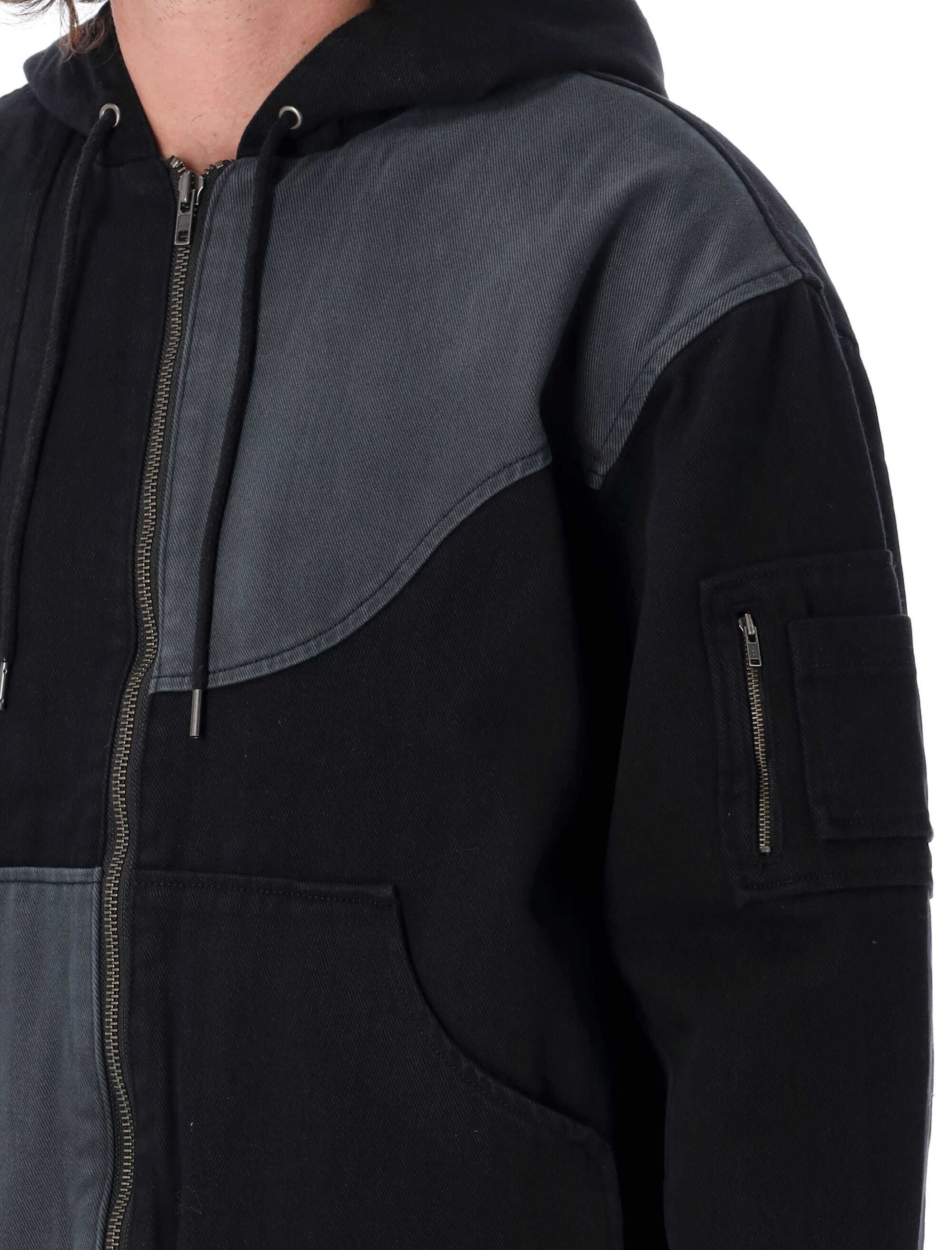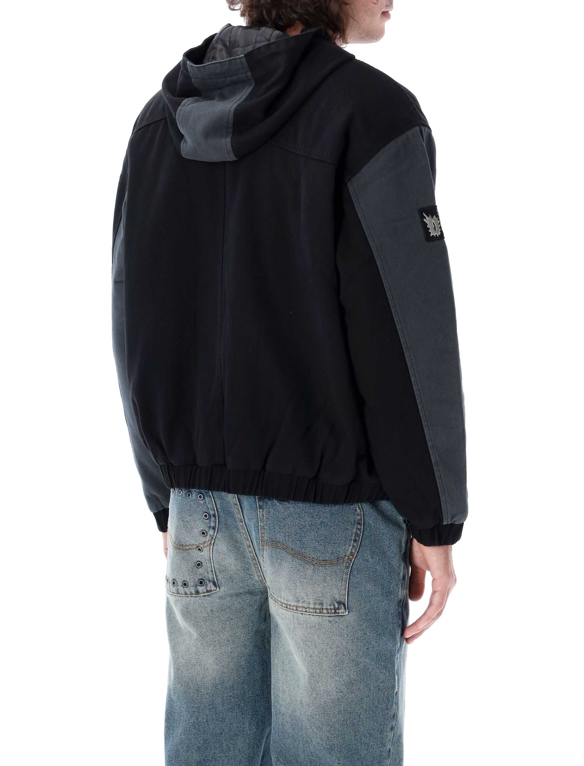 Elevate your style with the CHARCOAL Panel Denim Hooded Bomber by Dime. This versatile piece features a stylish hood, multiple pockets, and a comfortable fit. Perfect for layering, it's a must-have addition to any modern man's wardrobe.