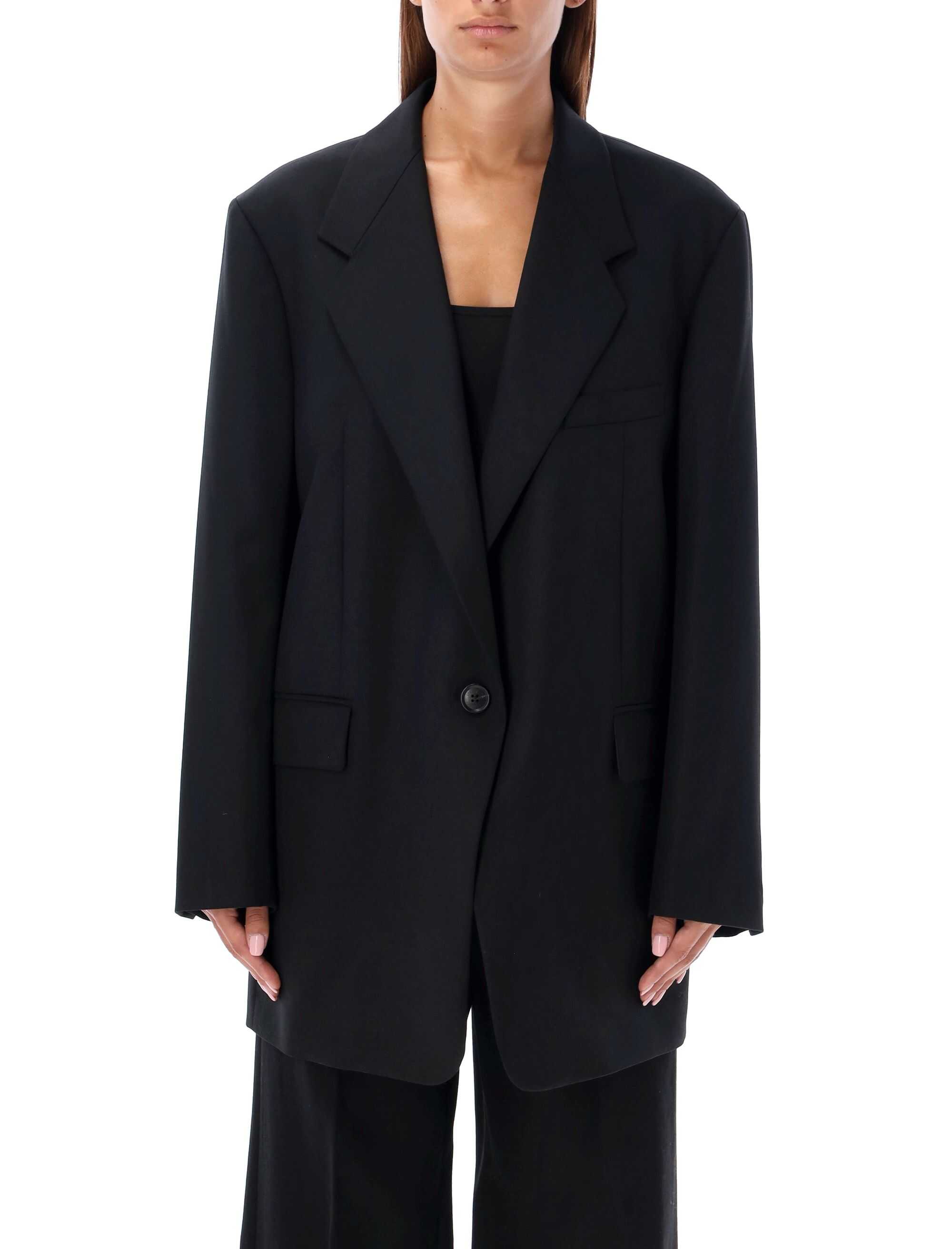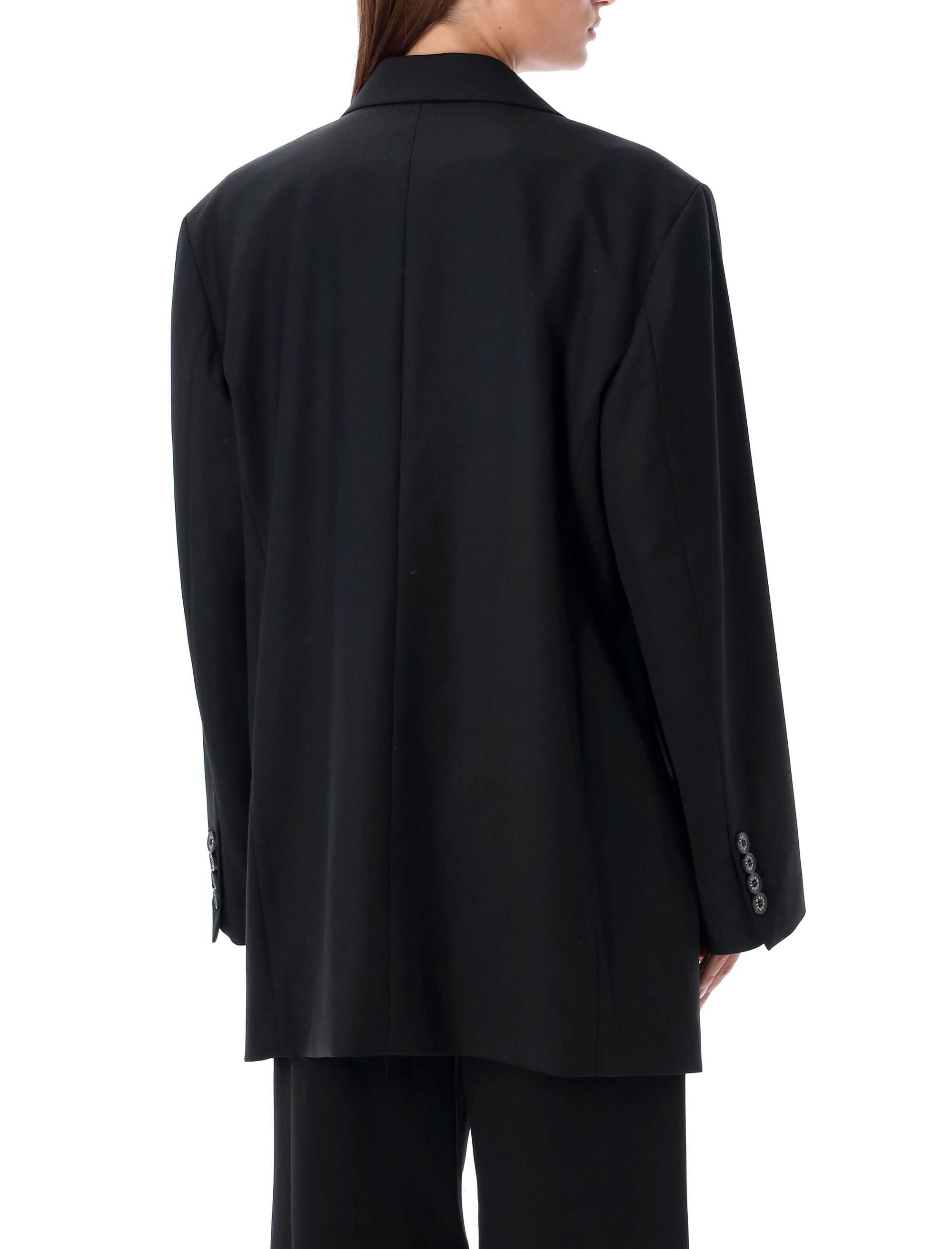 Make a statement with this luxurious oversized wool blazer by Low Classic. Crafted from 100% wool, it features a notched lapel collar, buttoned cuffs, and multiple pockets. Perfect for adding a touch of sophistication to any outfit. Model is 1.72m and wears size S.