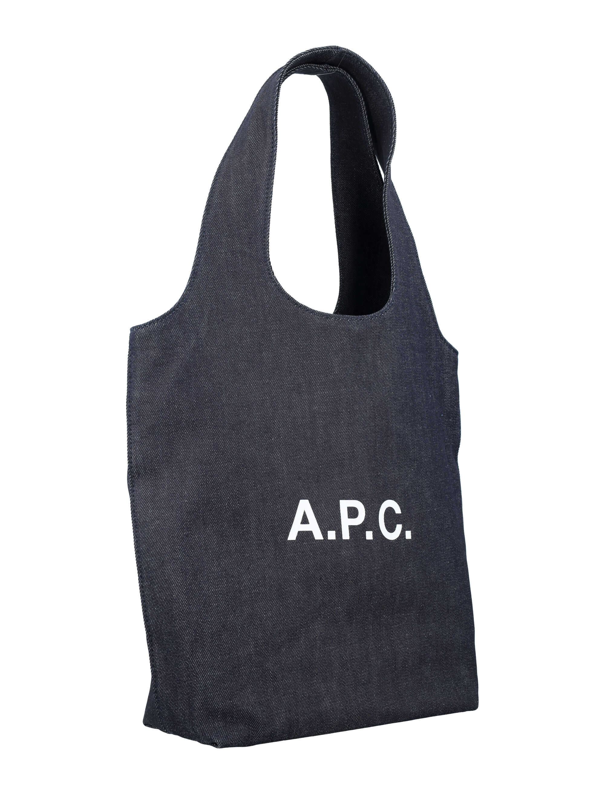 Elevate your style with the Ninon small tote bag by A.P.C. This chic handbag in INDIGO color is crafted from 98% cotton and 2% polyurethane. With a spacious main compartment, double handles, and a bold A.P.C. logo print, this bag is perfect for everyday use. Add a touch of sophistication to your look with this must-have accessory. Width: 18 cm Height: 12.5 cm Depth: 9.5 cm