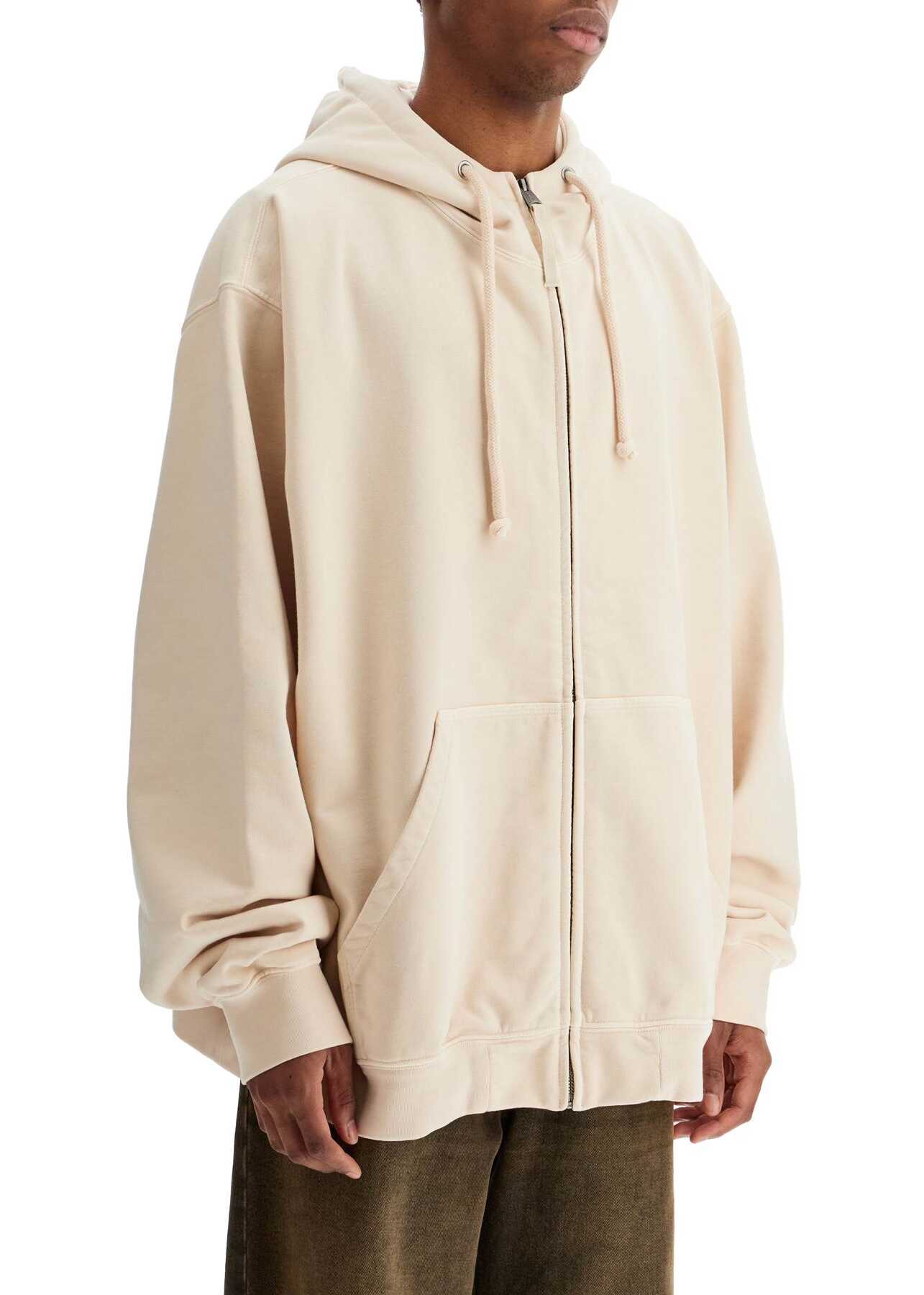 This Maison Margiela sweatshirt is made of pure cotton brushed jersey, enriched by a tone-on-tone embroidered logo on the back. It features an adjustable hood with drawstring, divided kangaroo pocket and ribbed finishes. The oversized fit with dropped shoulders is completed by the maison's four signature stitches behind the neck. The model is 182 cm tall and wears a size M.