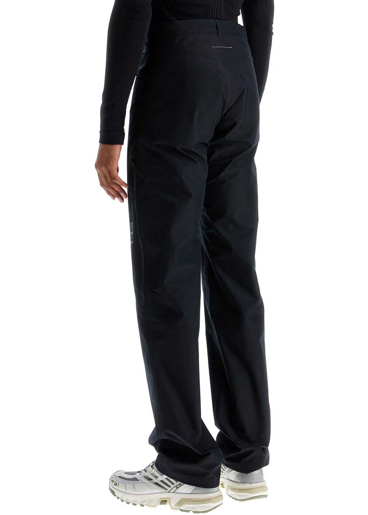 Crafted in Gore-Tex for windproof, waterproof and breathable action, these pants from the MM6 x Salomon capsule collection feature a regular fit with straight legs. The five-pocket construction is enhanced by zippered ventilation openings on the legs, belt loops and a front closure with a hidden zipper and snap button. The collaboration logo is printed on the left leg. The model is 182 cm tall and wears size M.