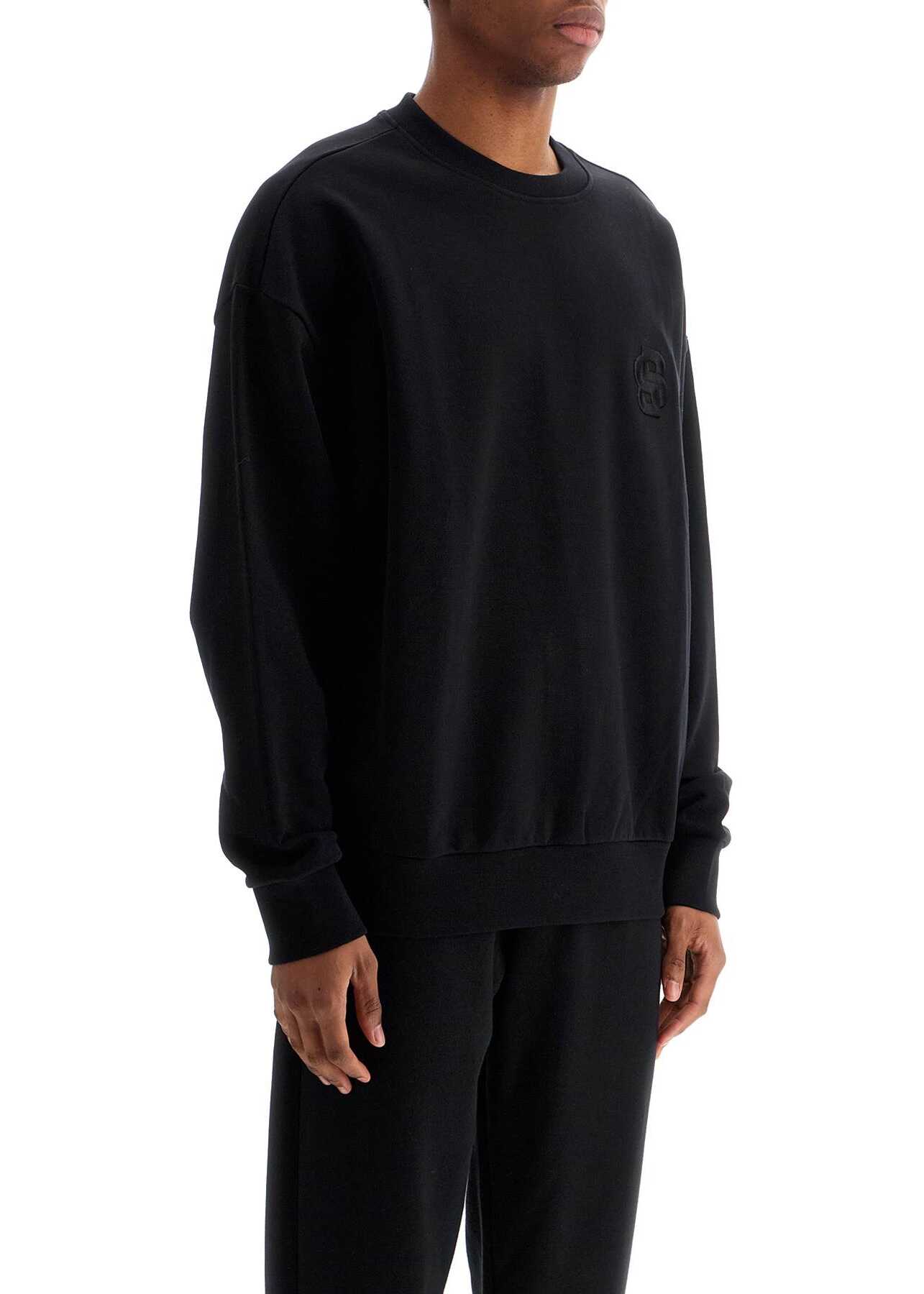 Made from mercerized cotton, this Boss crew neck sweatshirt has a relaxed fit with dropped shoulders and a tonal "Double B" monogram embroidered on the chest. Ribbed edges and brushed interior. The model is 182 cm tall and wears size M.