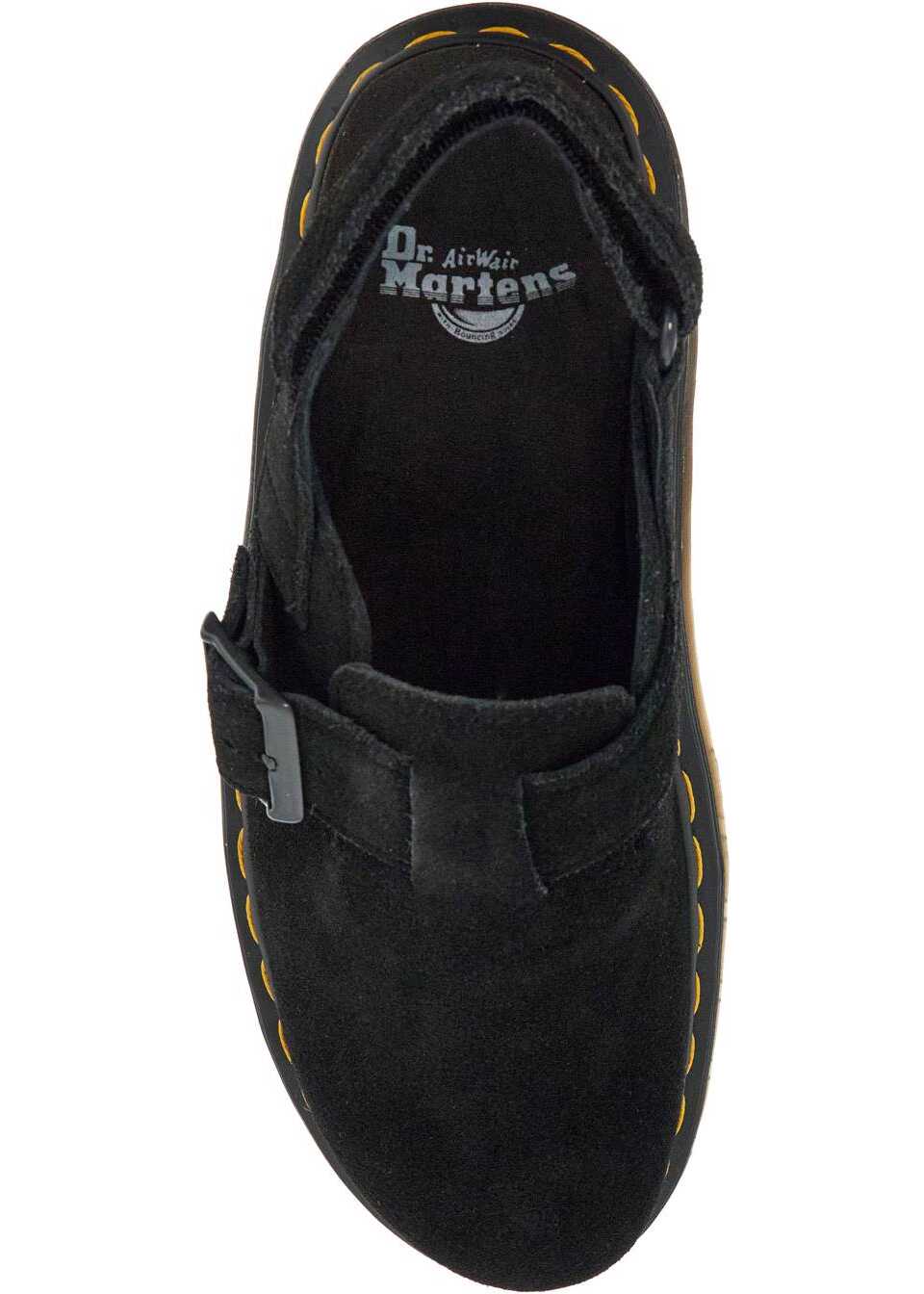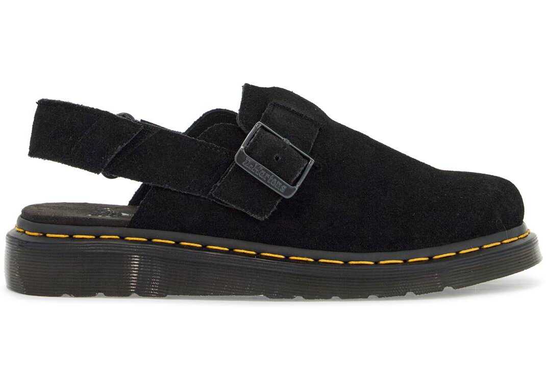 The Jorge II sabot by Dr. Martens is made of EH Suede and features adjustable straps on the front with a buckle and on the back with a velcro closure. The iconic yellow Goodyear stitching adds a touch of style to these shoes. The interior is lined with leather and fabric, while the insole is made of nubuck. The PVC sole provides durability and comfort.