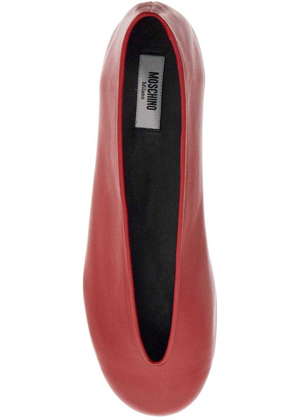 The Jil Sander Duck ballerinas in nappa leather are characterized by their deconstructed design with a rounded toe and 'egg-shaped' neckline. The interior is lined with canvas and features a leather insole, while the sole is made of leather.