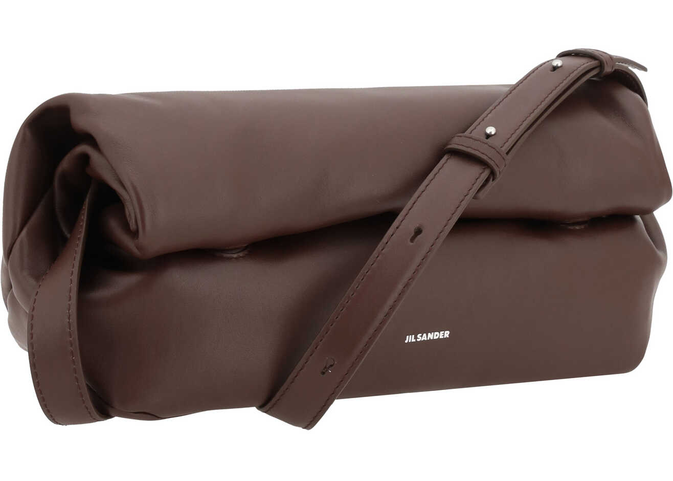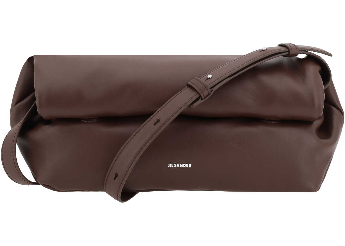 Jil Sander's Leather Rollup Shoulder Bag is a sleek and modern model, featuring clean lines and a minimalist design. The adjustable, flat shoulder strap makes it easy to adapt to different comfort needs, while the rollup closure at the top gives it a distinctive and innovative touch. The interior is simple, with only one compartment, ideal for holding essentials without sacrificing style. On the front, the brand's monogram is press-stamped, a detail that adds an extra accent of sophistication.