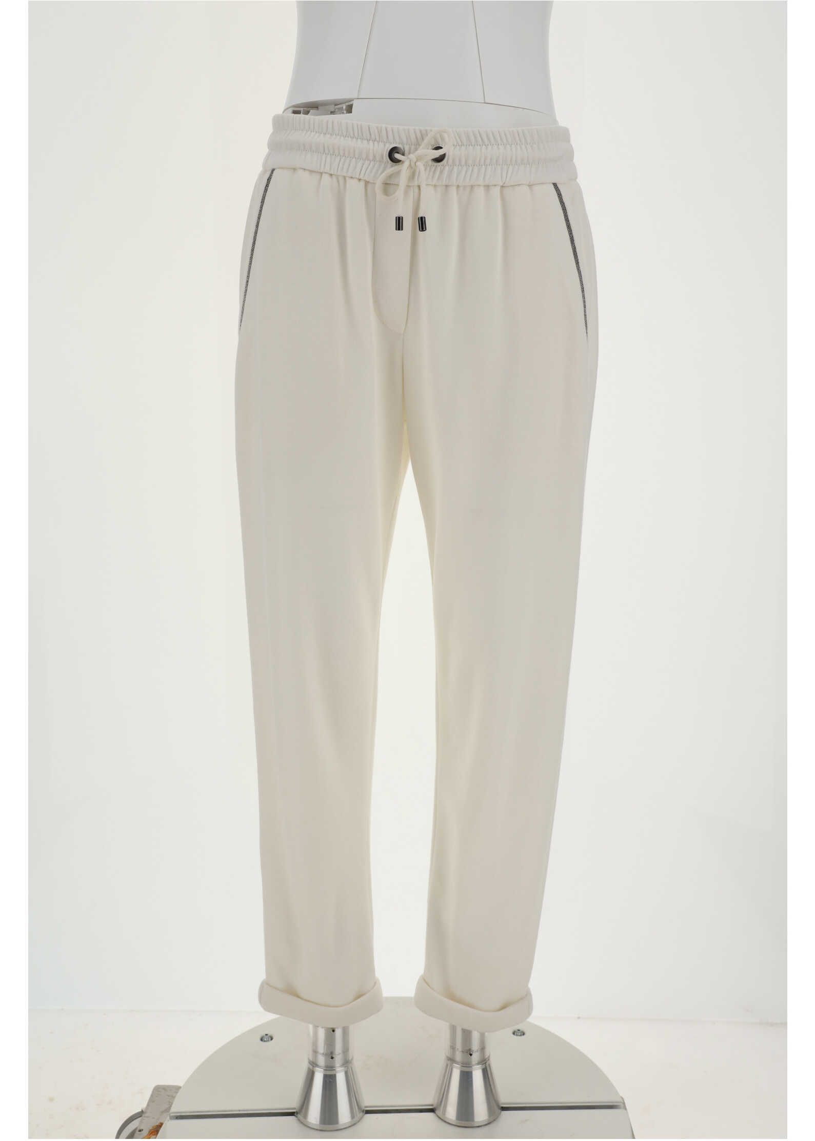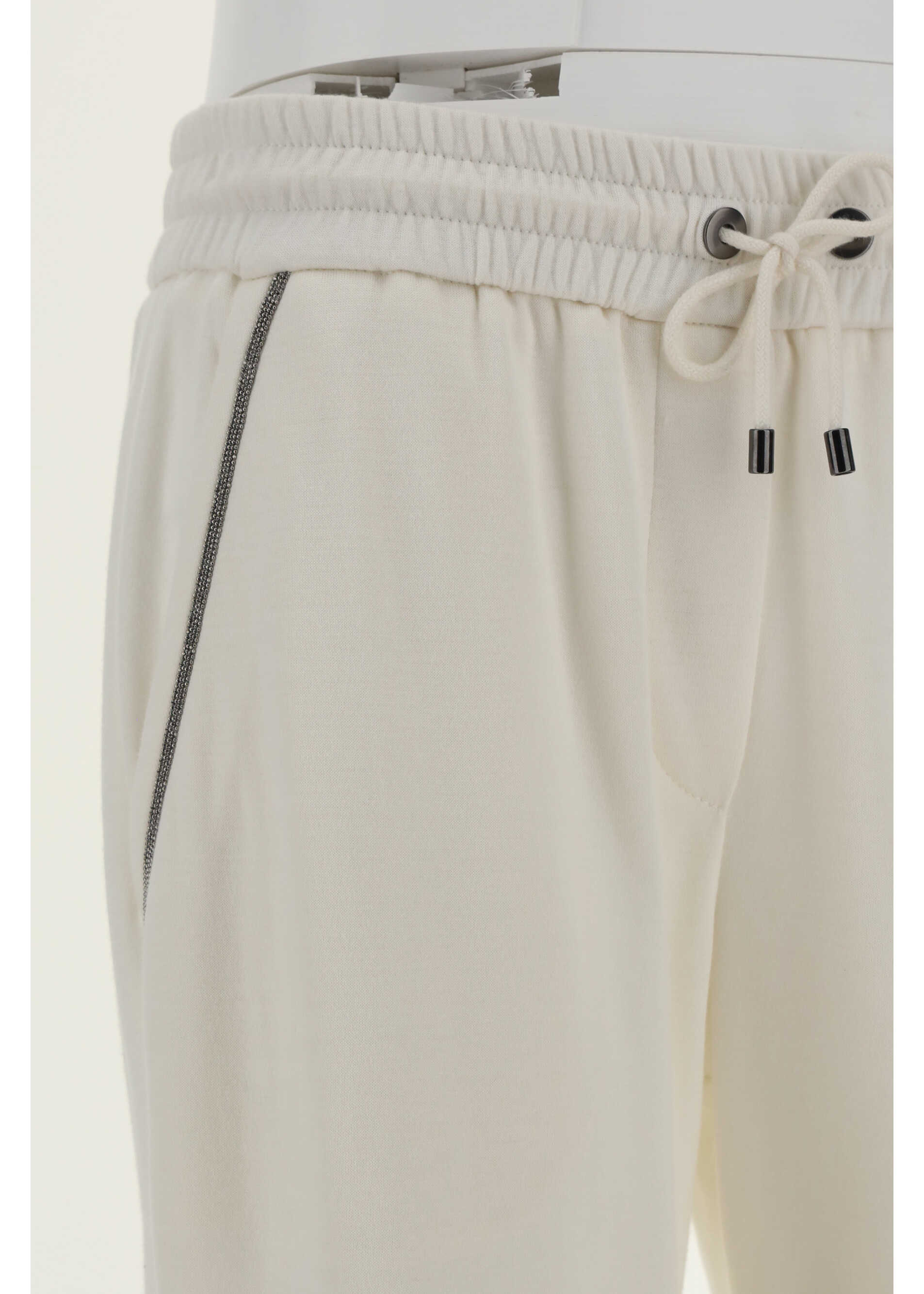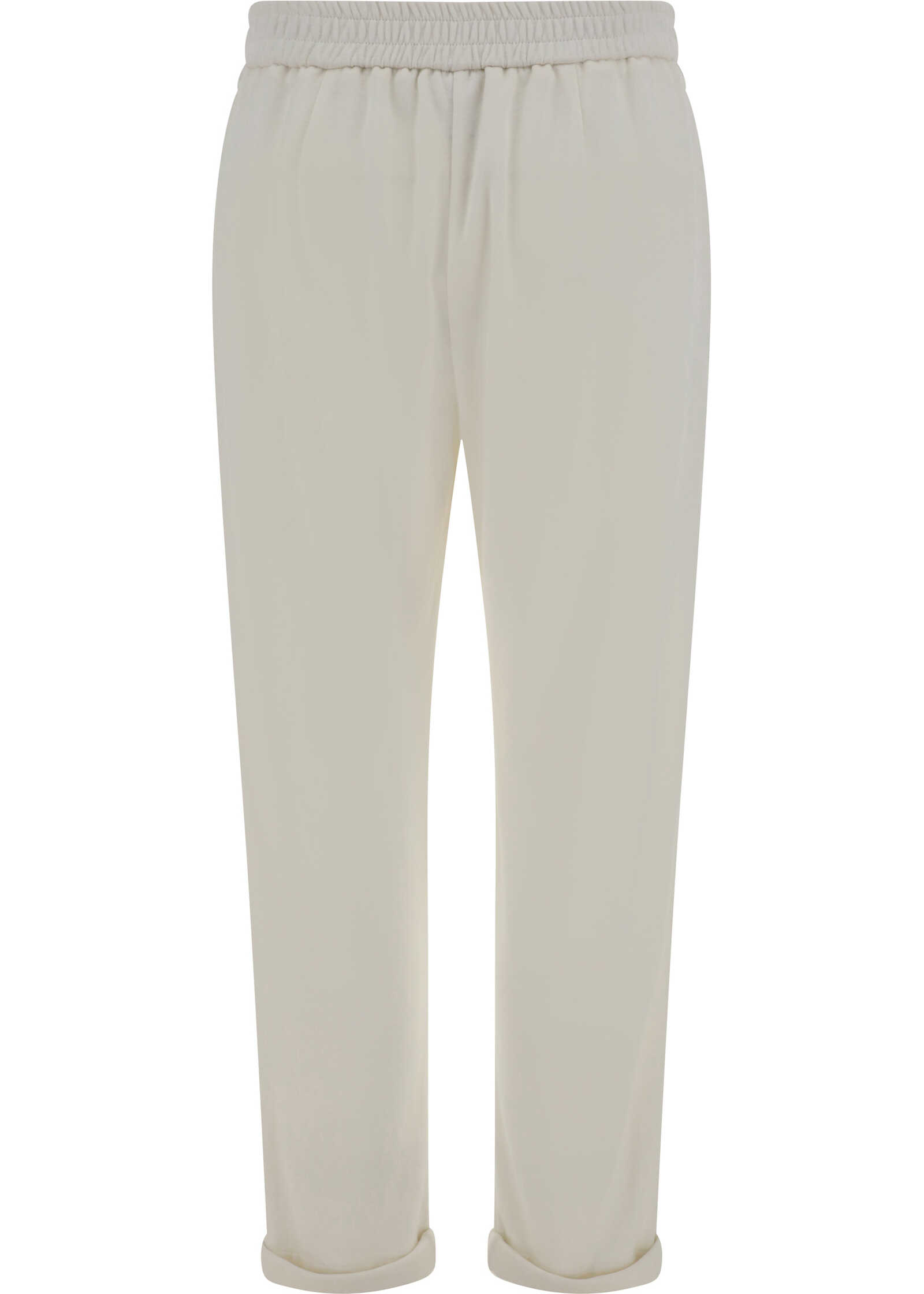 Brunello Cucinelli's cotton Pants are an elegant and comfortable piece, featuring an elasticated waistband adjustable with a drawstring, which offers a personalized fit. The two side slit pockets, embellished with sparkling jewels, add a touch of discreet luxury. The cuffed hem adds a modern detail, while the monochrome design ensures versatility and simplicity. With a regular fit, these trousers combine comfort and style, perfect for a casual-chic look.