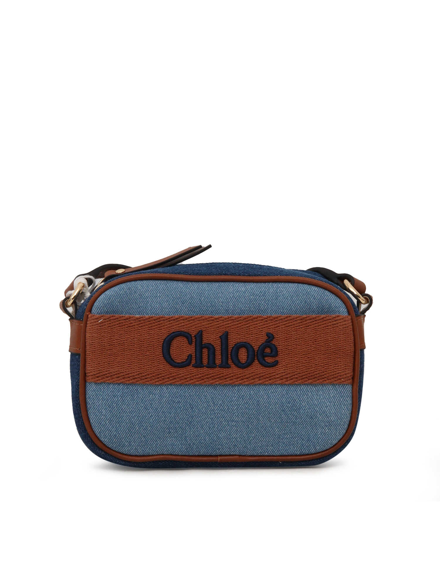 Shoulder bag in organic cotton denim and cow leather detail, recycled cotton twill lining, zip closure on top, Chlo� embossed pattern on front. Dimensions : 16 cm x 11cm x 5cm.
