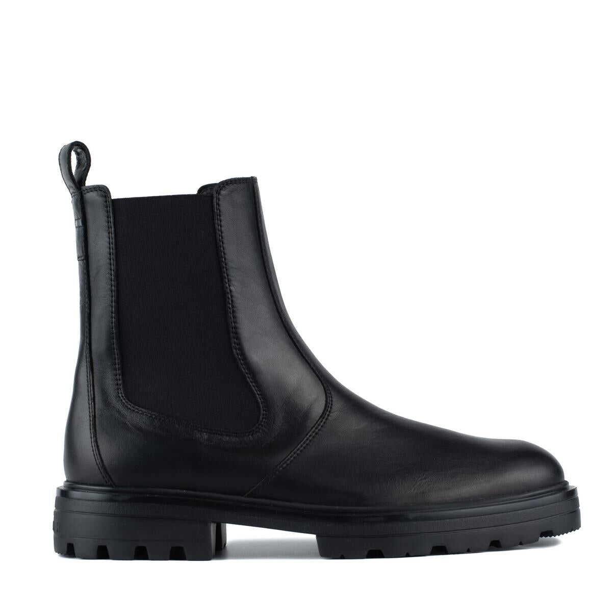 Color Item: Black | Made in Italy | Epitome of contemporary urban aesthetics and attitude, these Chelsea ankle boots have a new workwear-inspired, two-island extralight sole | Made of leather, they feature a streamlined upper with side elastic inserts and a back eyelet | Complemented by a soft insole, they're a punchy model for your everyday look | Chelsea Ankle Boots Hogan H673 men's | Leather upper | Side elastic inserts | Soft insole 5 mm | EVA soleTotal height 5 cm