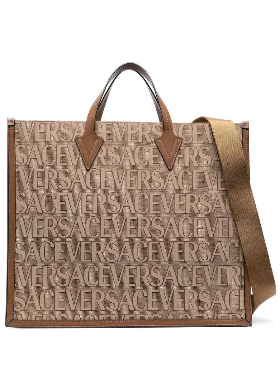Embroidered canvas Versace Allover shopping bag Width: 42 cm Height: 35 cm Depth: 16,5 cm Handle height: 11 cm Min shoulder strap length: 45 cm Max shoulder strap length: 80 cm