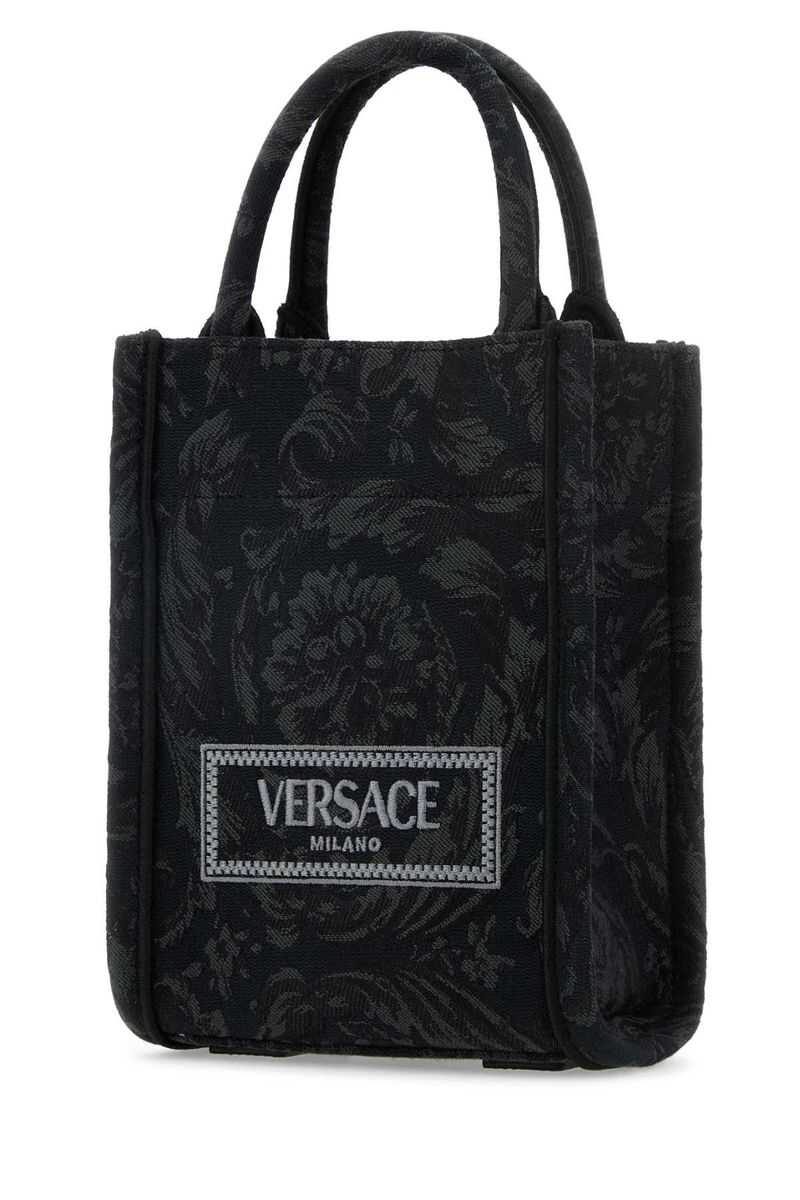 Embroidered fabric mini Athena handbag Width: 22 cm Height: 18 cm Depth: 10 cm Handle height: 11,5 cm Min shoulder strap length: 40 cm Max shoulder strap length: 67,5 cm