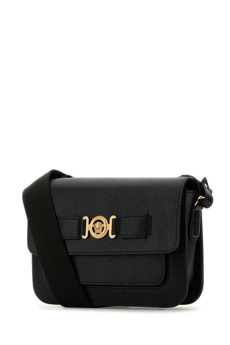 Black leather Medusa Biggie crossbody bag Width: 22 cm Height: 17 cm Depth: 6 cm Min shoulder strap length: 35 cm Max shoulder strap length: 70 cm