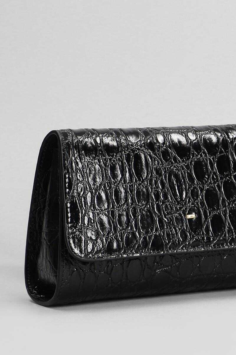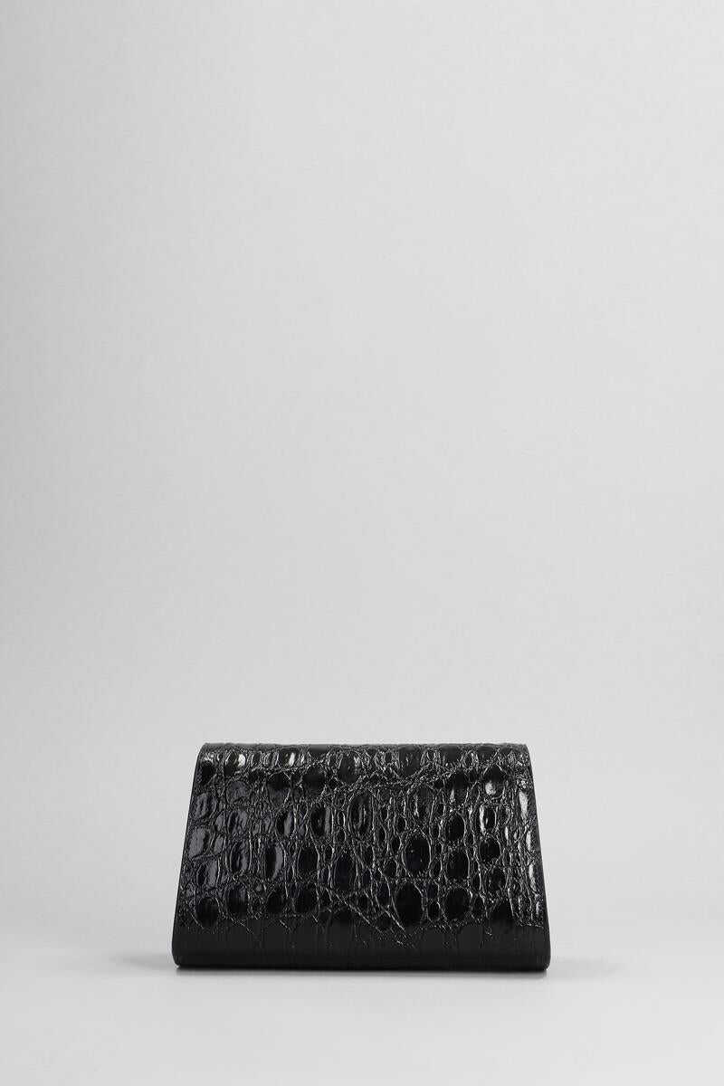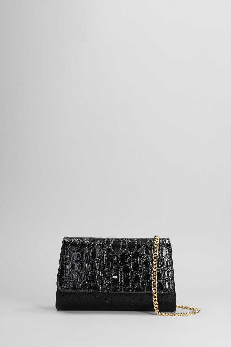 Cleopatra Clutch in black leather, chain shoulder strap, magnetic closure, internal pocket, gold hardware, crocodile embossed leather, 100% leather, Made in Italy, Height 110 mm, Width 180 mm