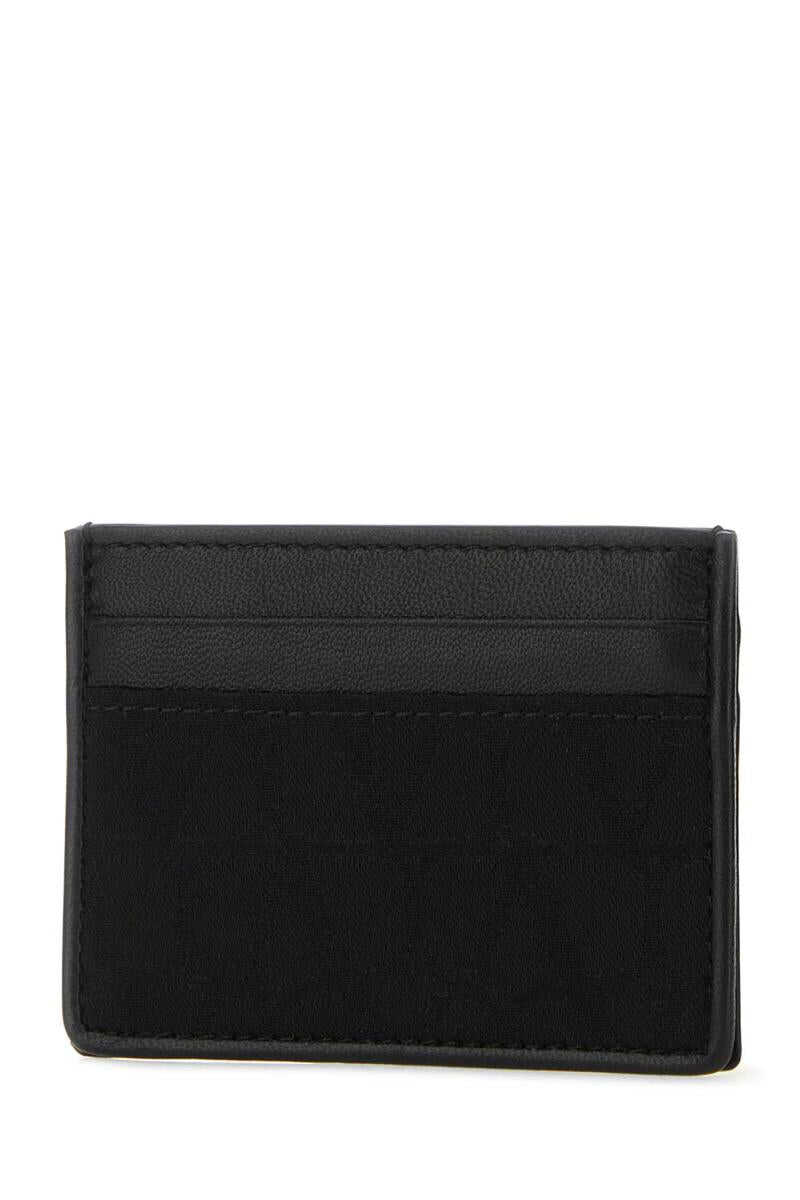 Black leather and fabric Toile Iconographe card holder Width: 9,5 cm Height: 7 cm