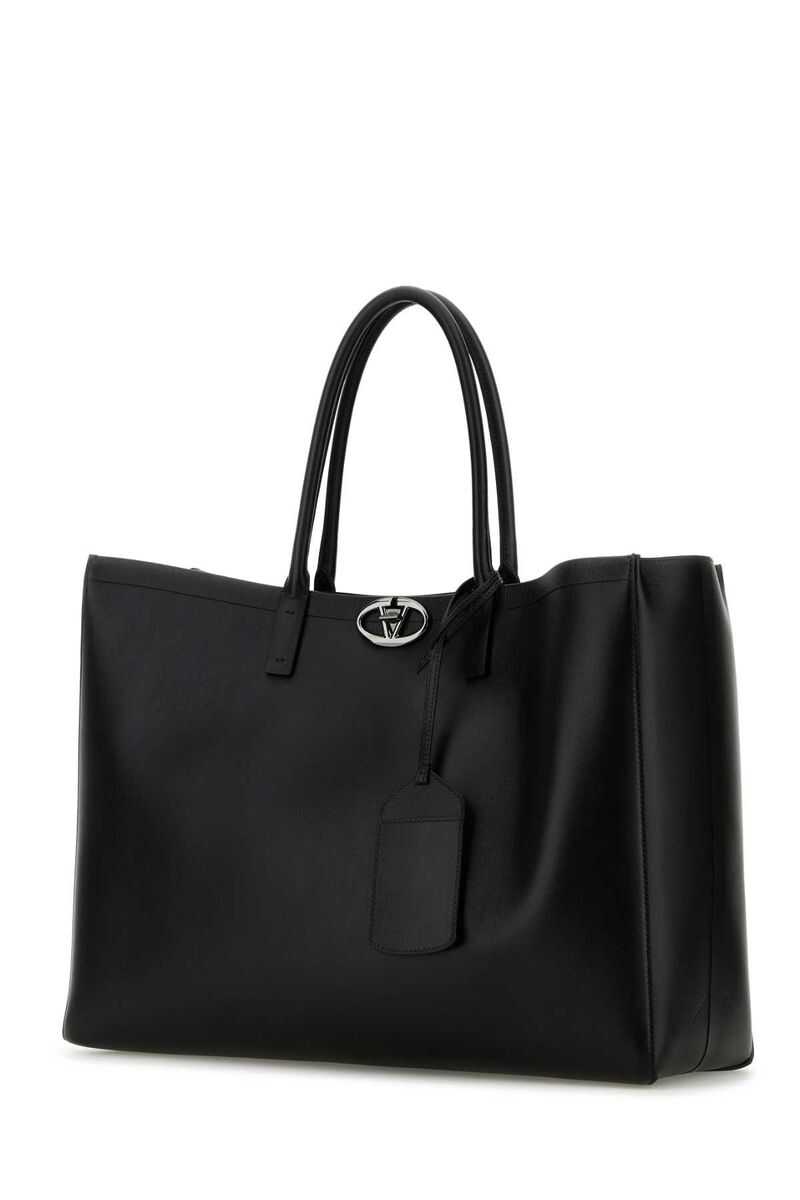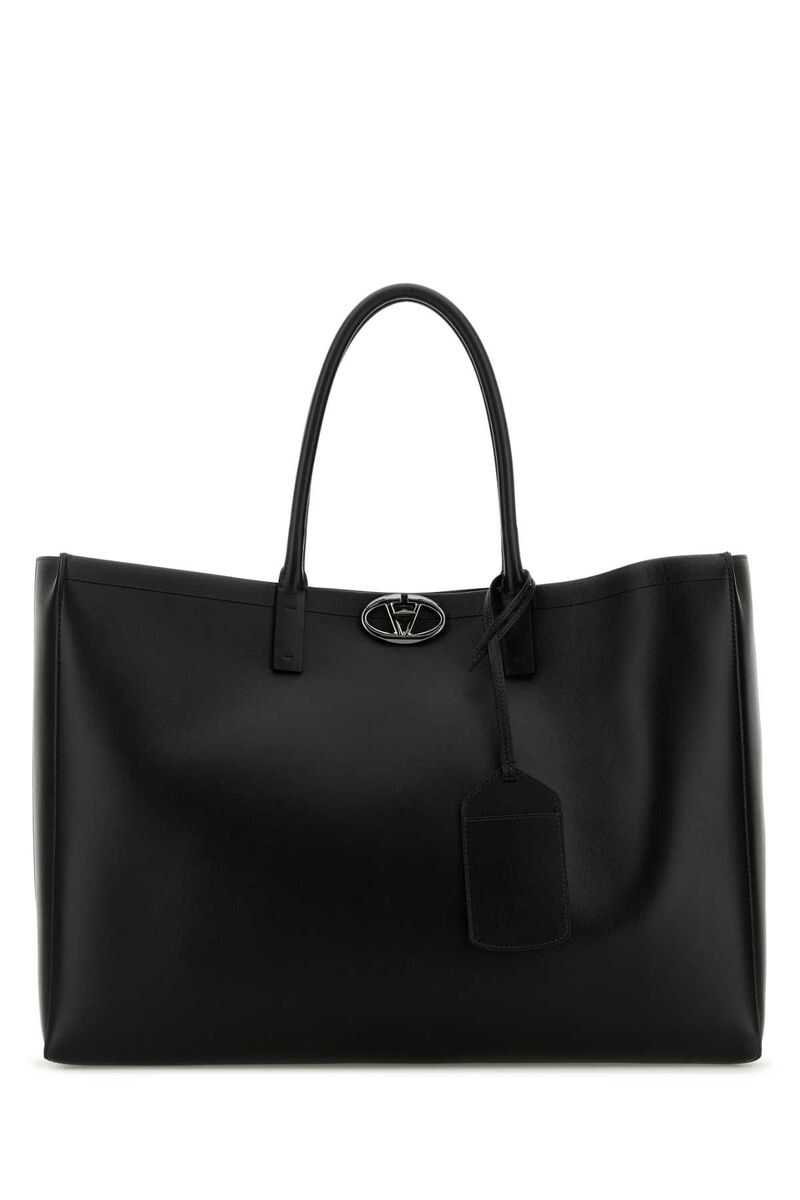 Black leather VLogo shopping bag Width: 48 cm Height: 34 cm Depth: 14 cm Handle height: 20 cm