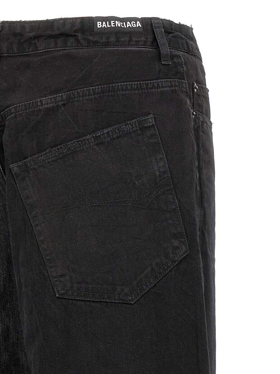 'Fifty-Fifty' jeans in Italian twisted denim and Japanese denim with used-effect details, button closure, drawstring at the waist, five pockets, mid-waist model with asymmetrical leg length