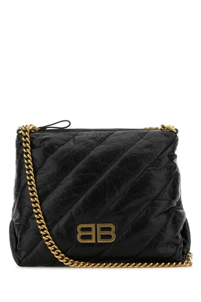 Black leather Crush shoulder bag Width: 25 cm Height: 22 cm Depth: 10 cm Min shoulder strap length: 28 cm Max shoulder strap length: 53 cm