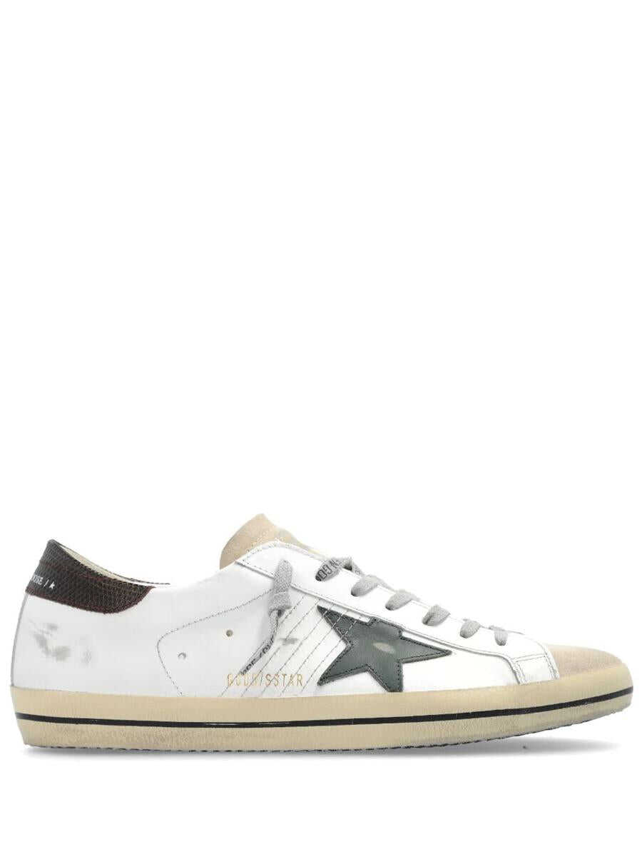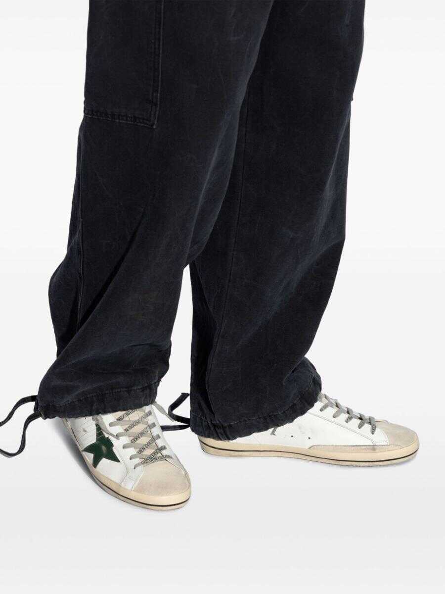 white/forest green/taupe calf leather distressed finish suede panelling signature star patch to the sides contrasting branded heel counter logo-debossed tongue front lace-up fastening flat rubber sole