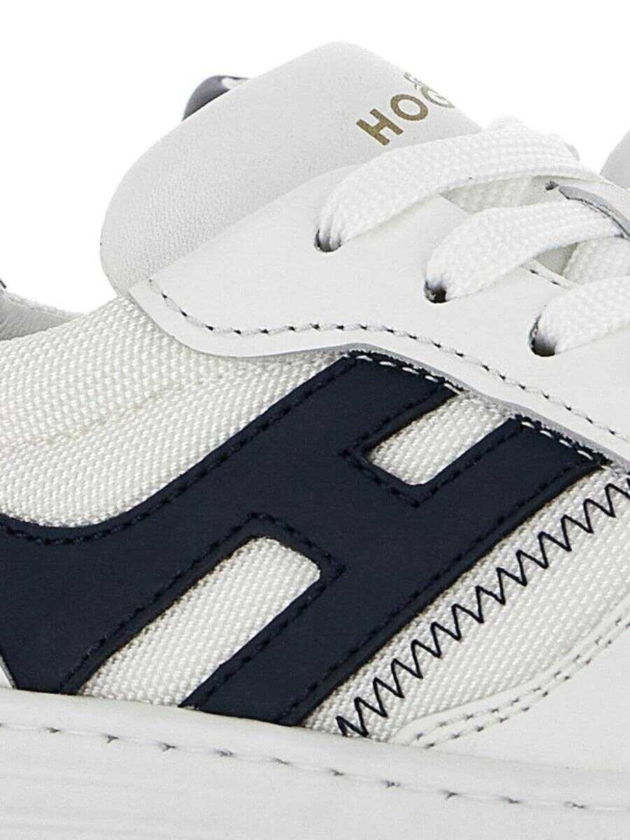 white/midnight blue canvas/leather colour-block panelled design contrast stitching logo-print tongue round toe front lace-up fastening contrasting branded heel counter branded insole flat rubber sole