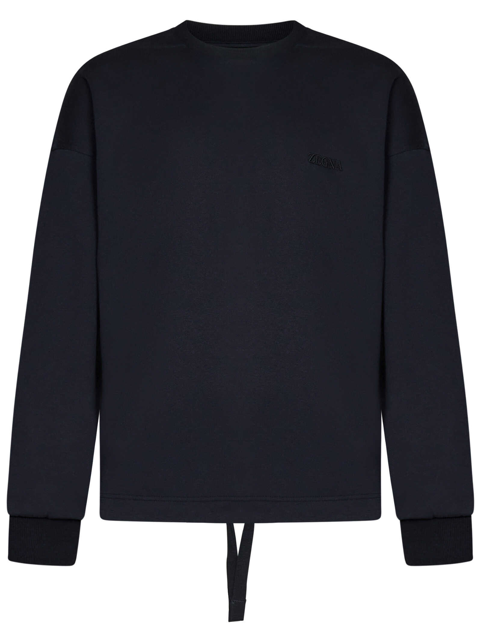 Relaxed fit sweatshirt in midnight blue cotton with logo embroidery on the chest and drawstring on the hem.