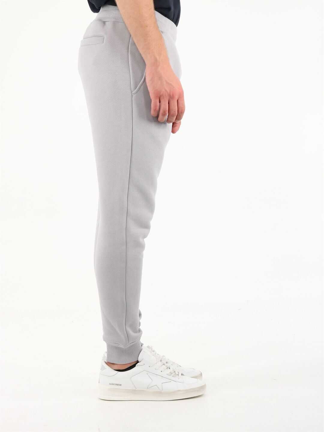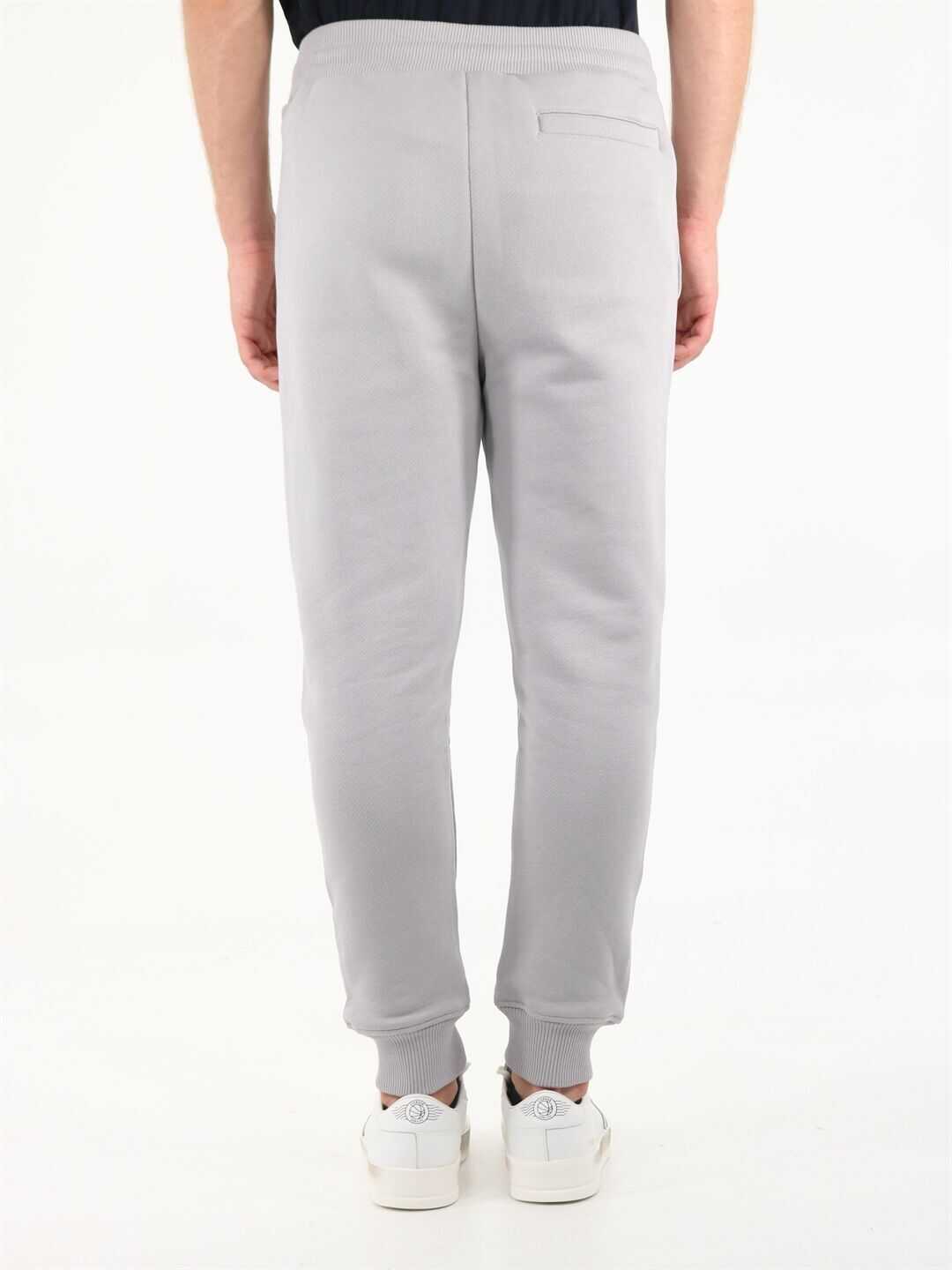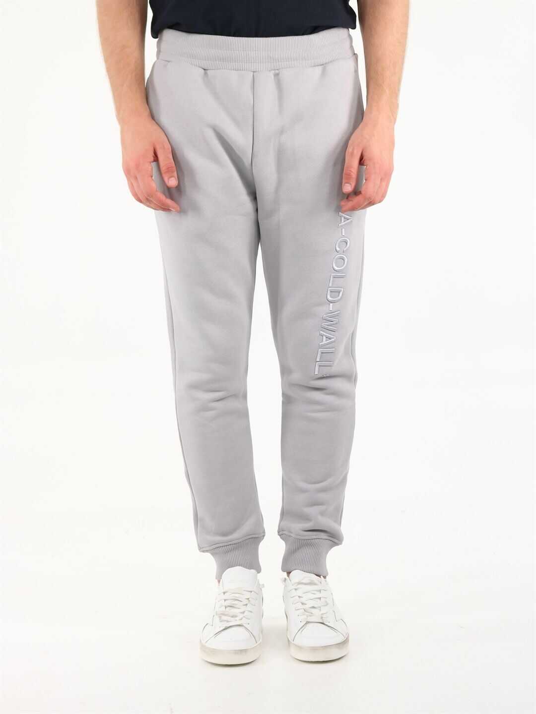 Gray jogging trousers with tone-on-tone embroidered vertical logo. It features ribbed elasticated waist and bottom leg, two side welt pockets and a back pocket.