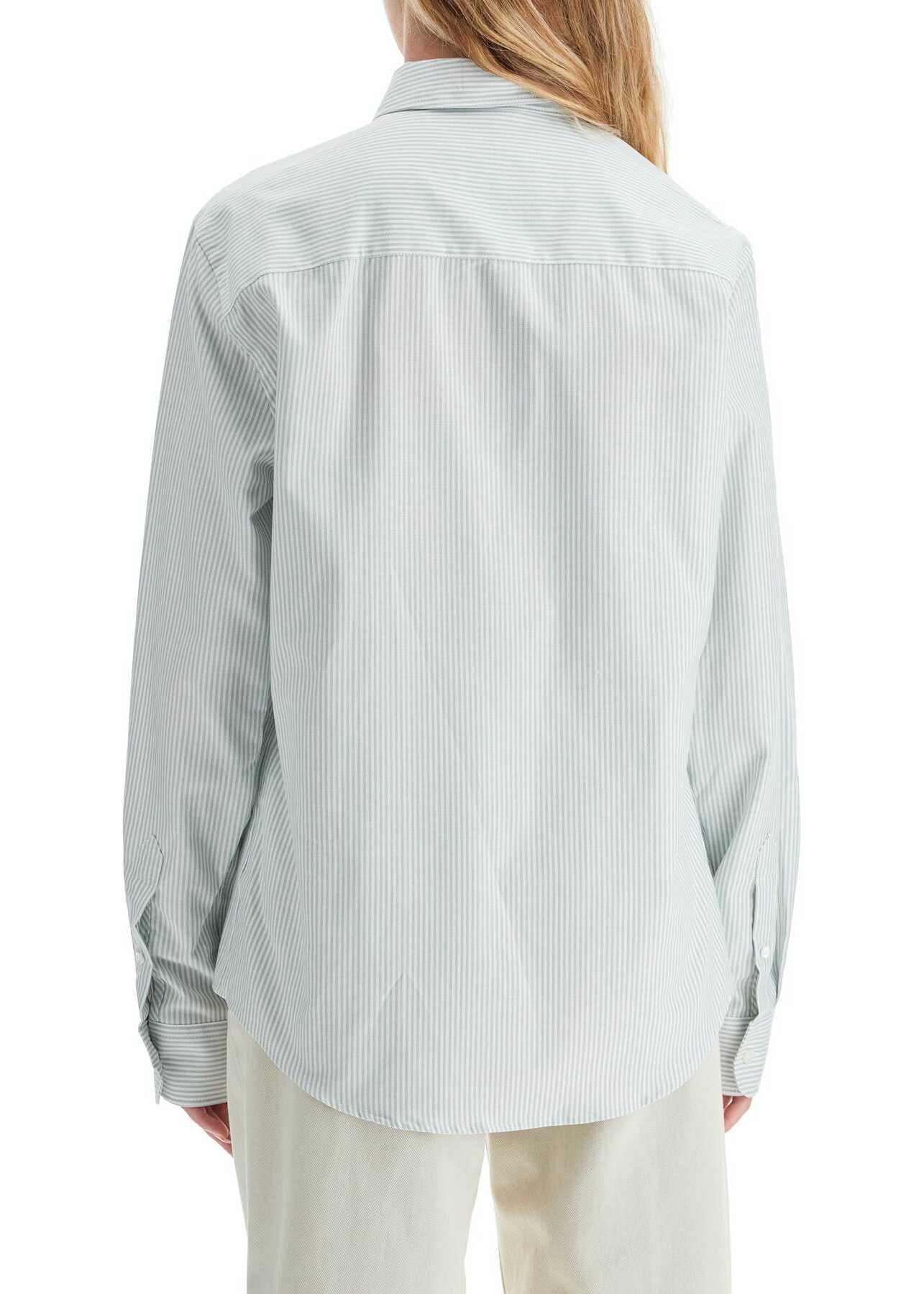 This Ami Paris shirt is made of striped Oxford cotton and features the signature Ami De Coeur embroidery on the chest. It has a button-down collar with an American placket and is finished with rounded cuffs and a curved hem. The fit is straight with a relaxed silhouette. The model is 187 cm tall and wears a size L.