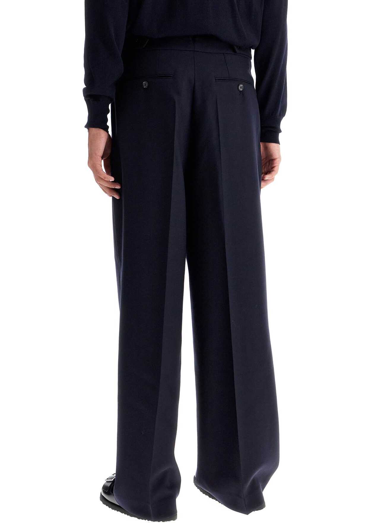 Ami Paris straight-cut trousers with a wide double pleat, made of wool gabardine. They are characterized by the tailored construction with four pockets, completed by adjustable straps at the waist and front closure with buttons and hook. The model is 187 cm tall and wears size FR 40.