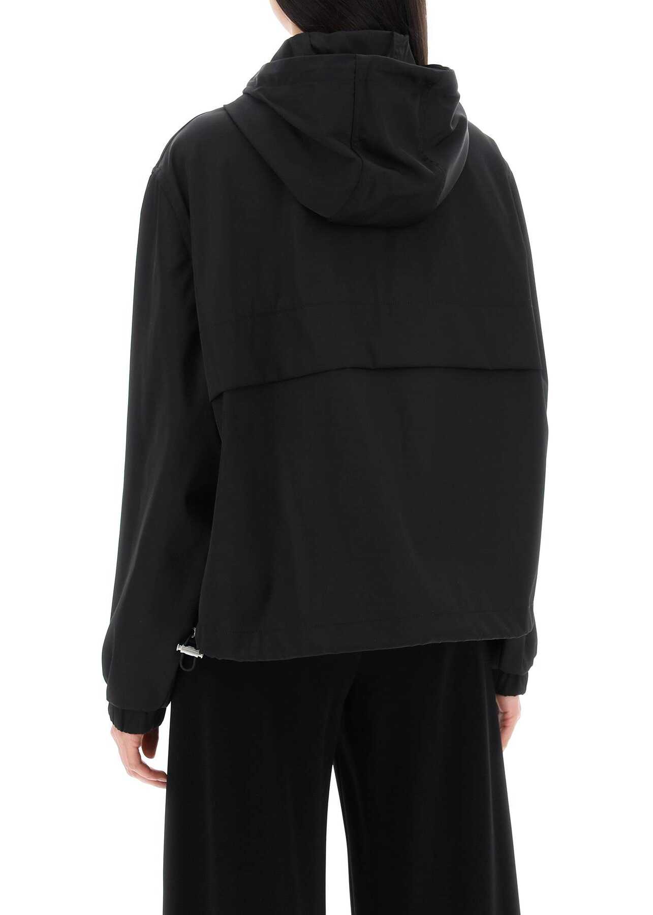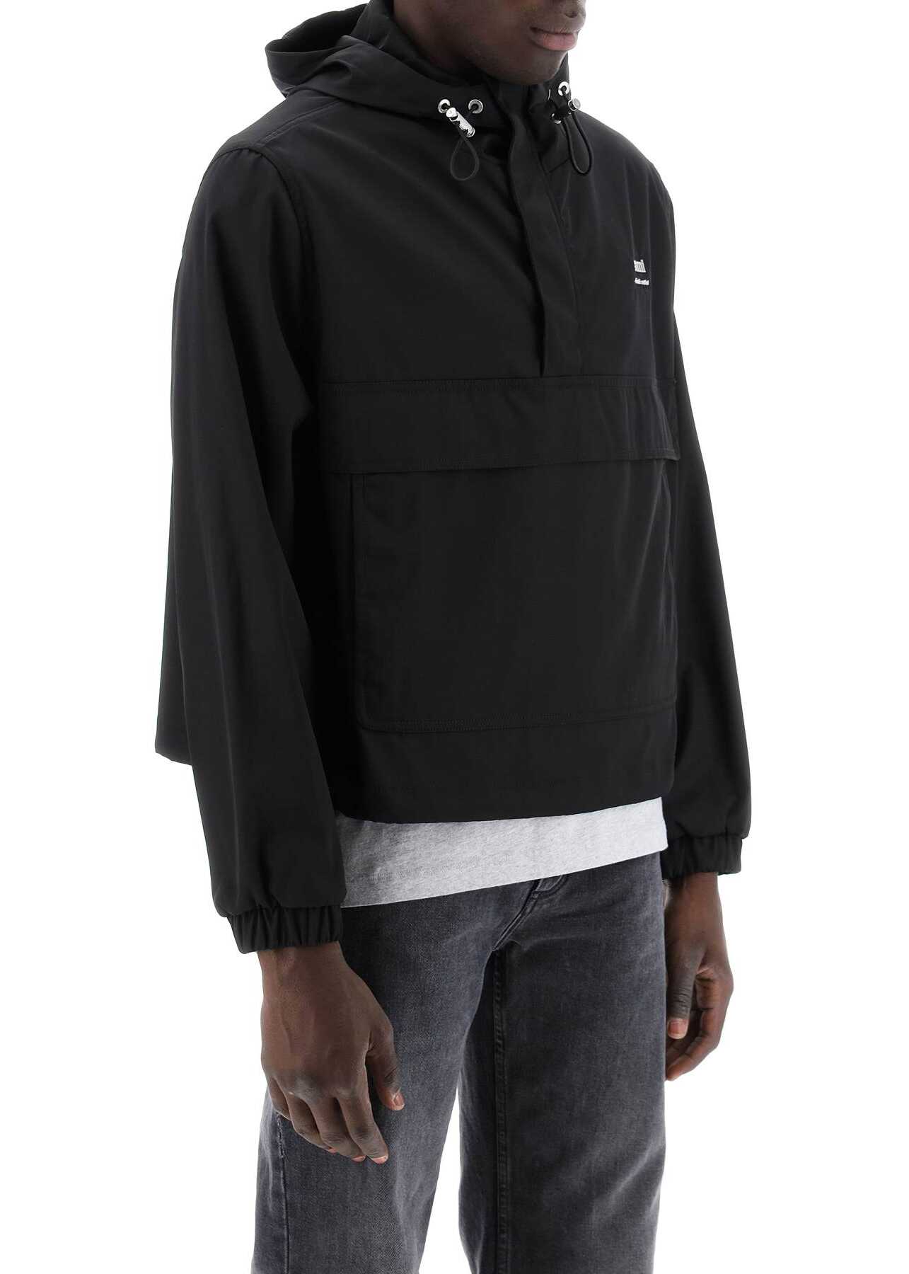 The Ami Paris anorak windbreaker is made of water-repellent twill nylon and cotton, detailed with a contrasting rubber logo on the chest. It features an adjustable hood with drawstring, half zip and hidden snaps closure, a large kangaroo pocket with flap, elasticized cuffs, and adjustable bottom with drawstring. Unlined. The model is 177 cm tall and wears size S. The male model is 187 cm tall and wears size M.