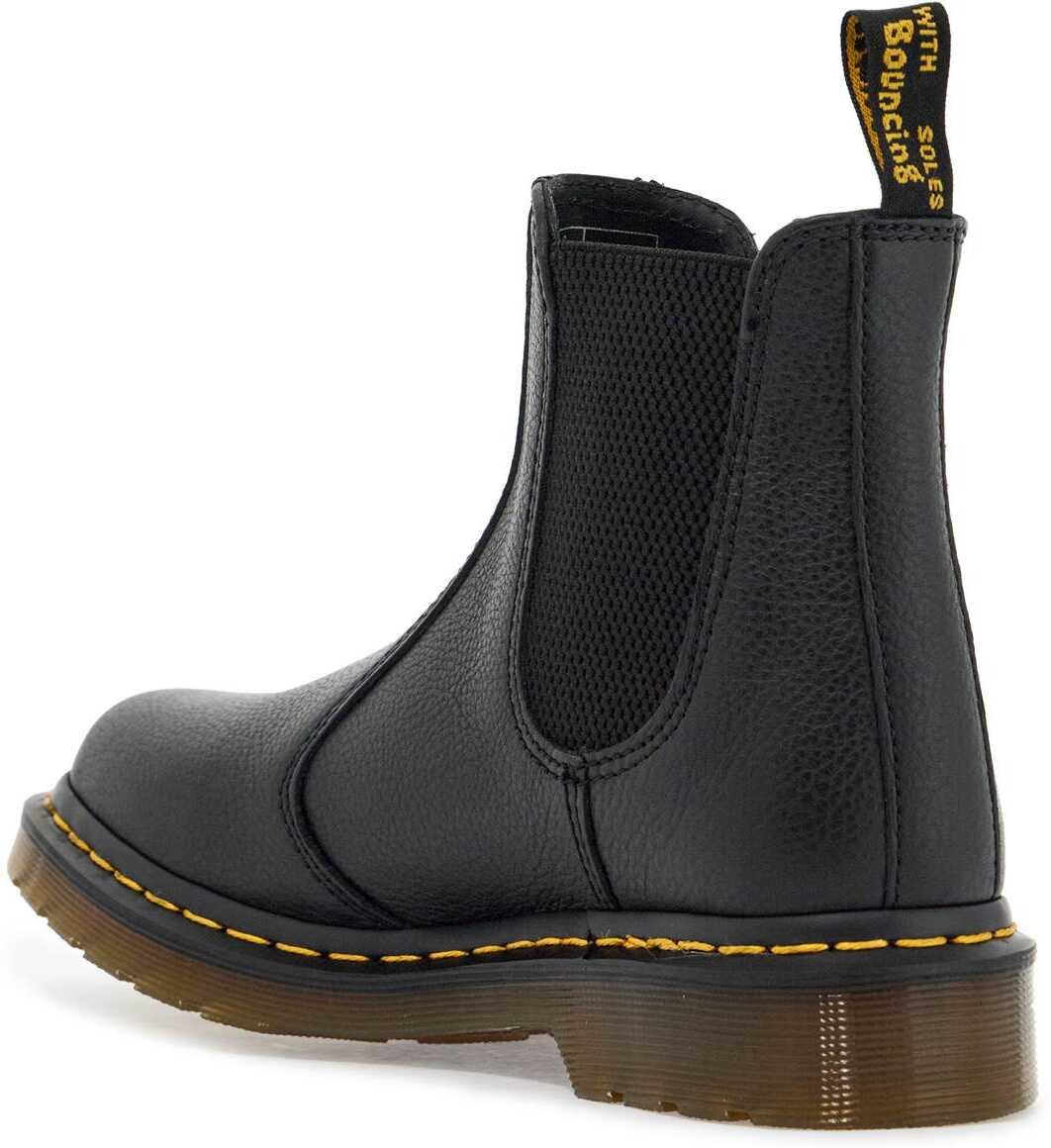 The 2976 Chelsea boots by Dr. Martens are made of hammered Virginia leather. They feature an unlined interior with a removable insole, a rear AirWair tab, classic yellow stitching, and a rubber sole.