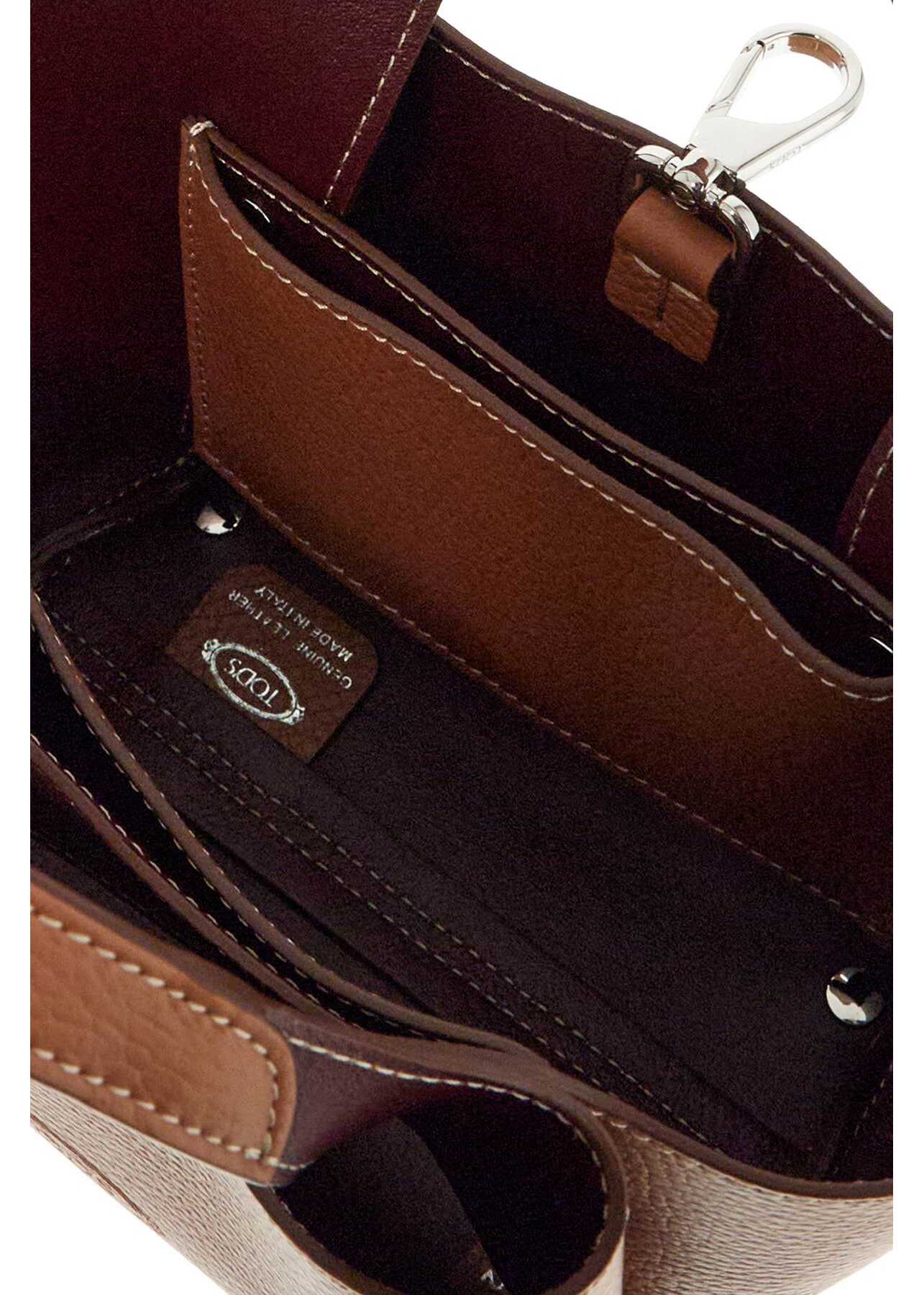 This mini Tod's bag is made of hammered leather with an embossed logo and a removable T Timeless metal accessory. It features flat handles, a snap closure, and an interior with a central compartment and two small additional compartments, including two flat pockets that act as dividers. The adjustable and removable shoulder strap adds versatility, while protective feet at the base ensure durability. The silver finish hardware adds a touch of elegance to this practical and stylish bag.