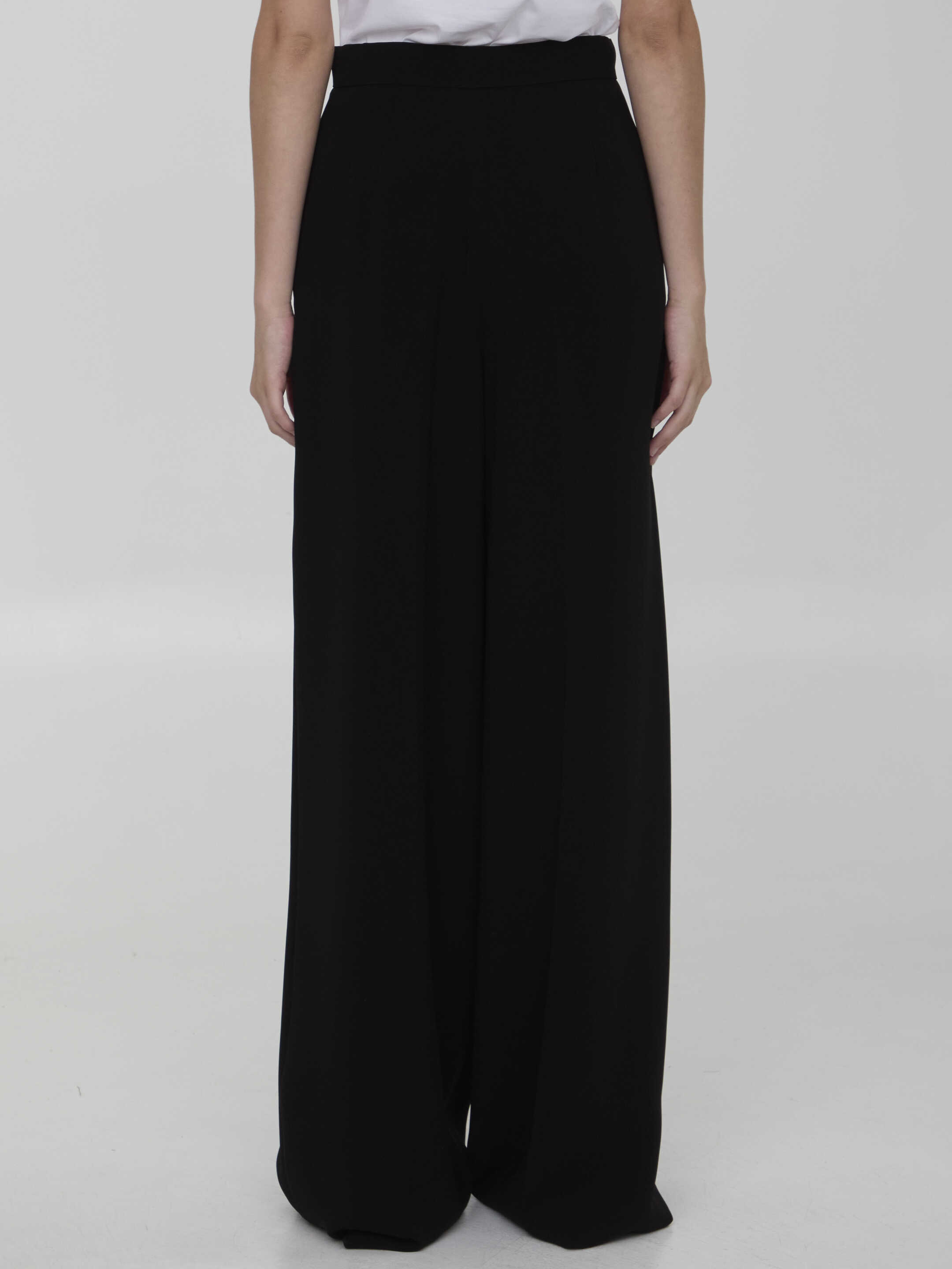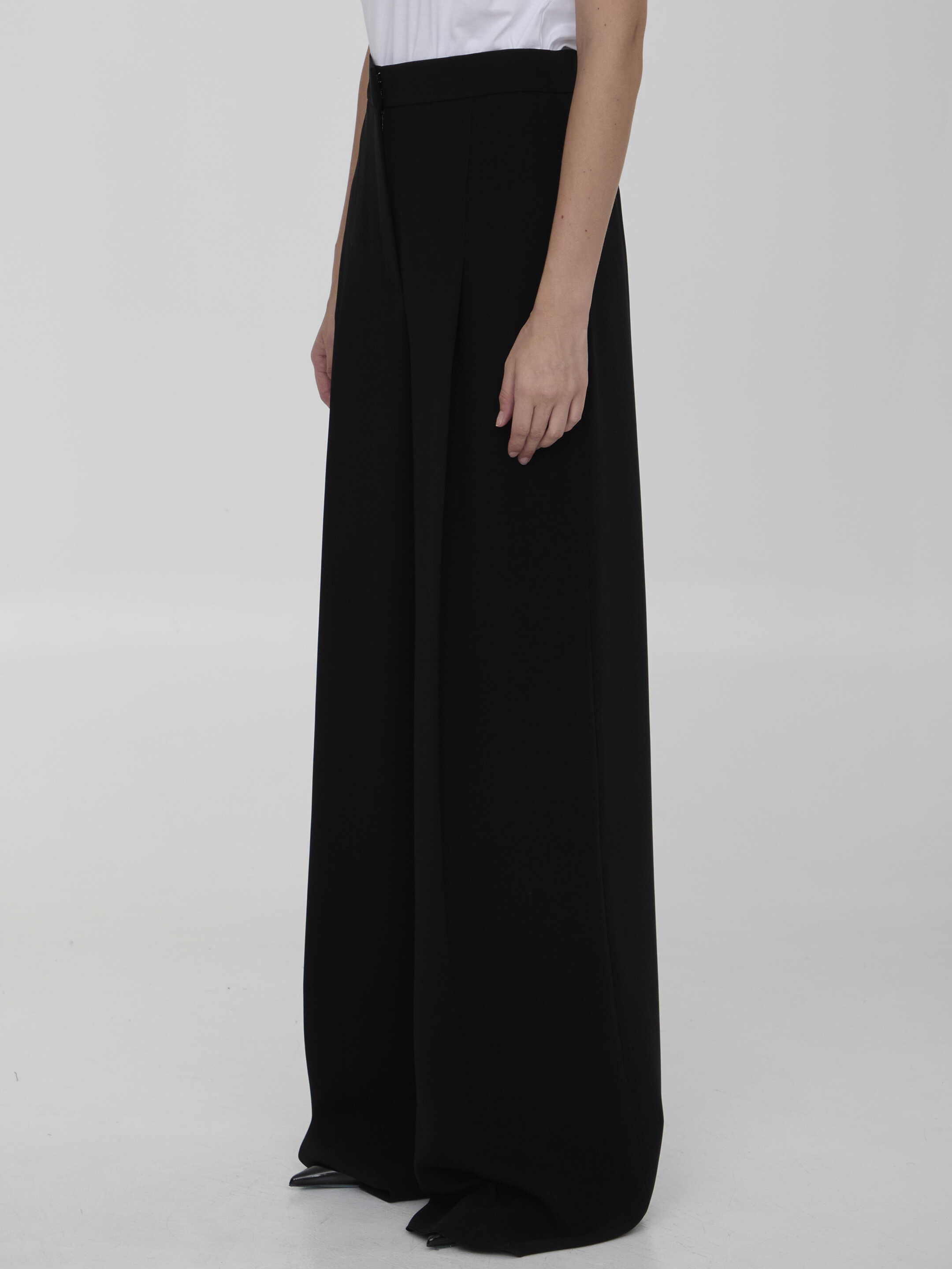 High-waisted wide-leg pleated Lino trousers in black triacetate blend. It features zip, button and hook-and-eye closure and two side welt pockets. Regular fit.