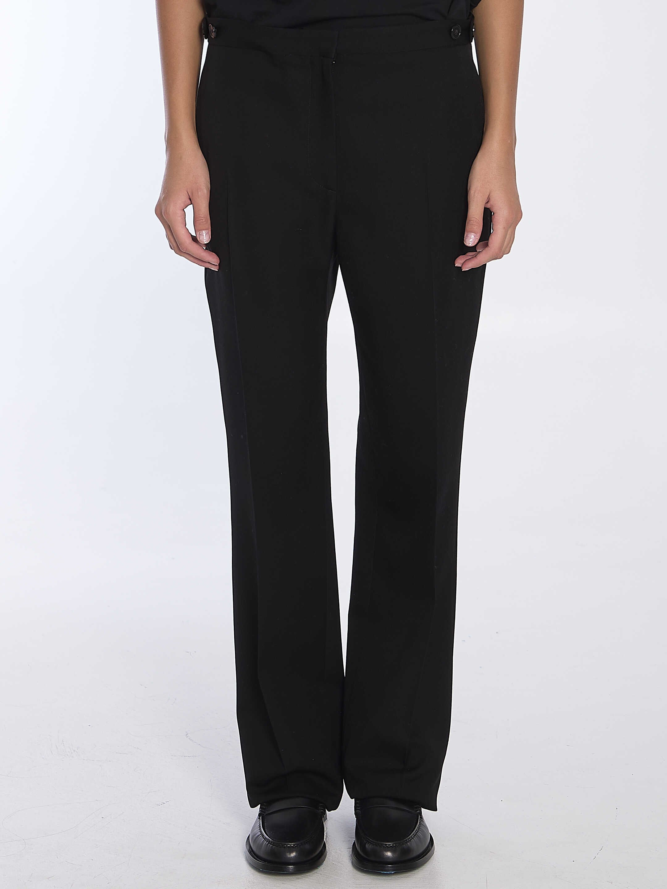 Mid-rise tailored Jesse pants in black Japanese wool with front and back pleats. It features zip and hook closure, two side welt pockets and one rear welt pocket. Regular fit.