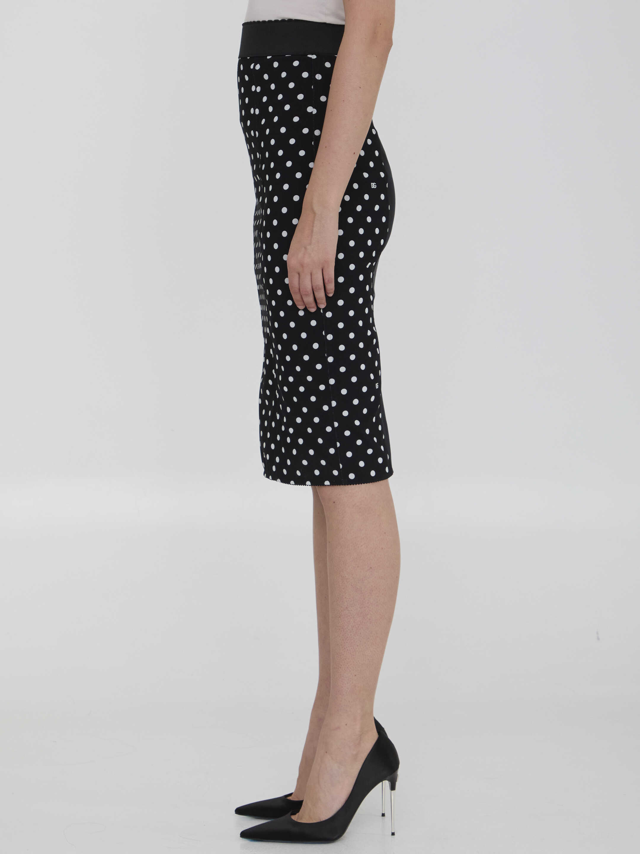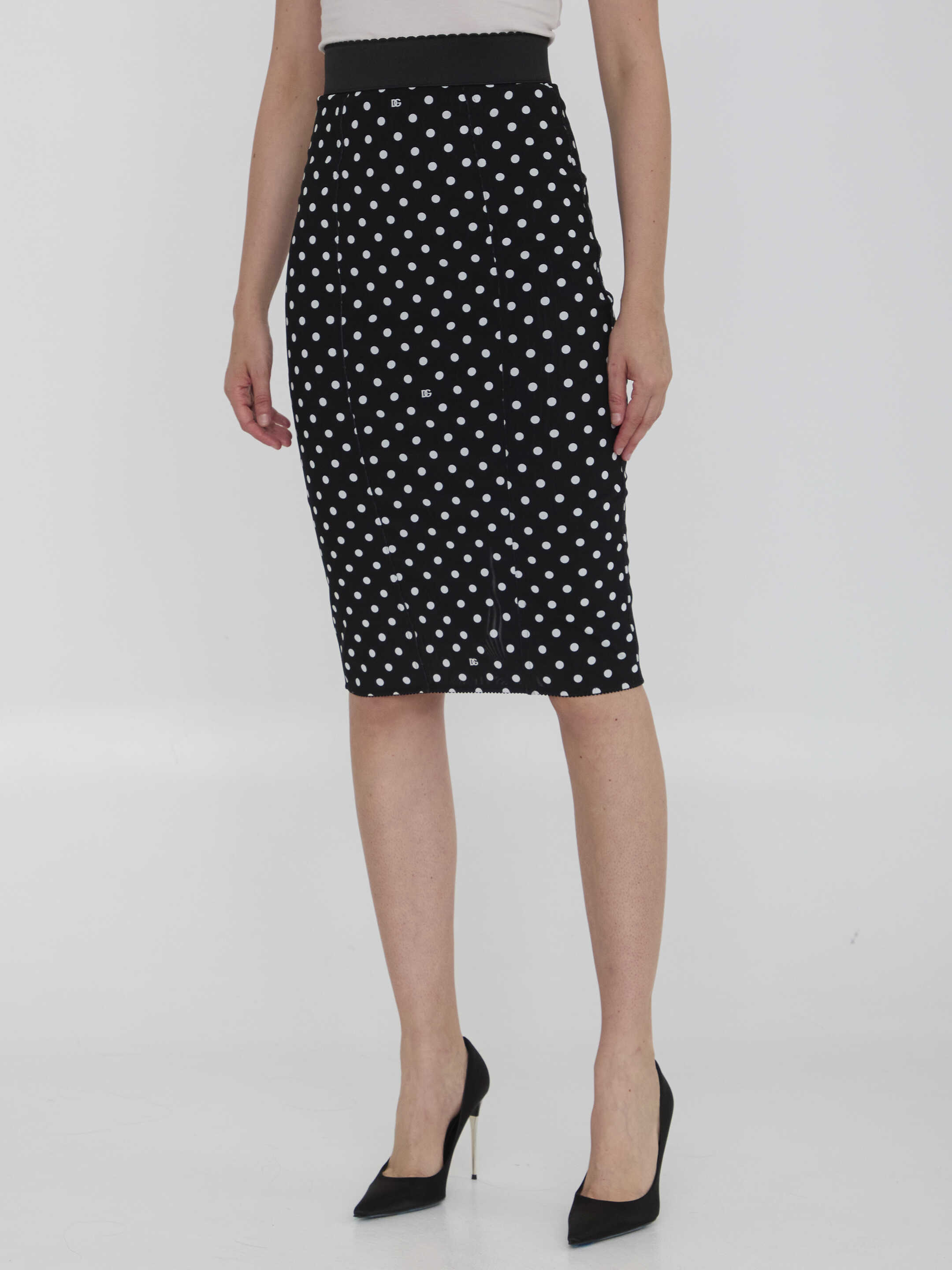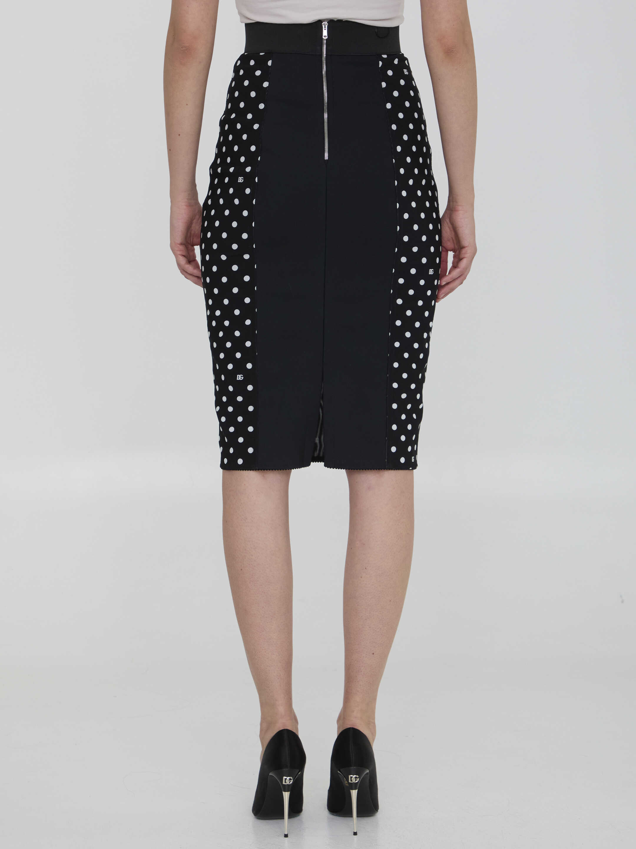 Pencil skirt in black and white marquisette with all-over Polka-dot print and corset details. It features elasticated waistband and zip and hook-and-eye closure at the back. Regular fit.