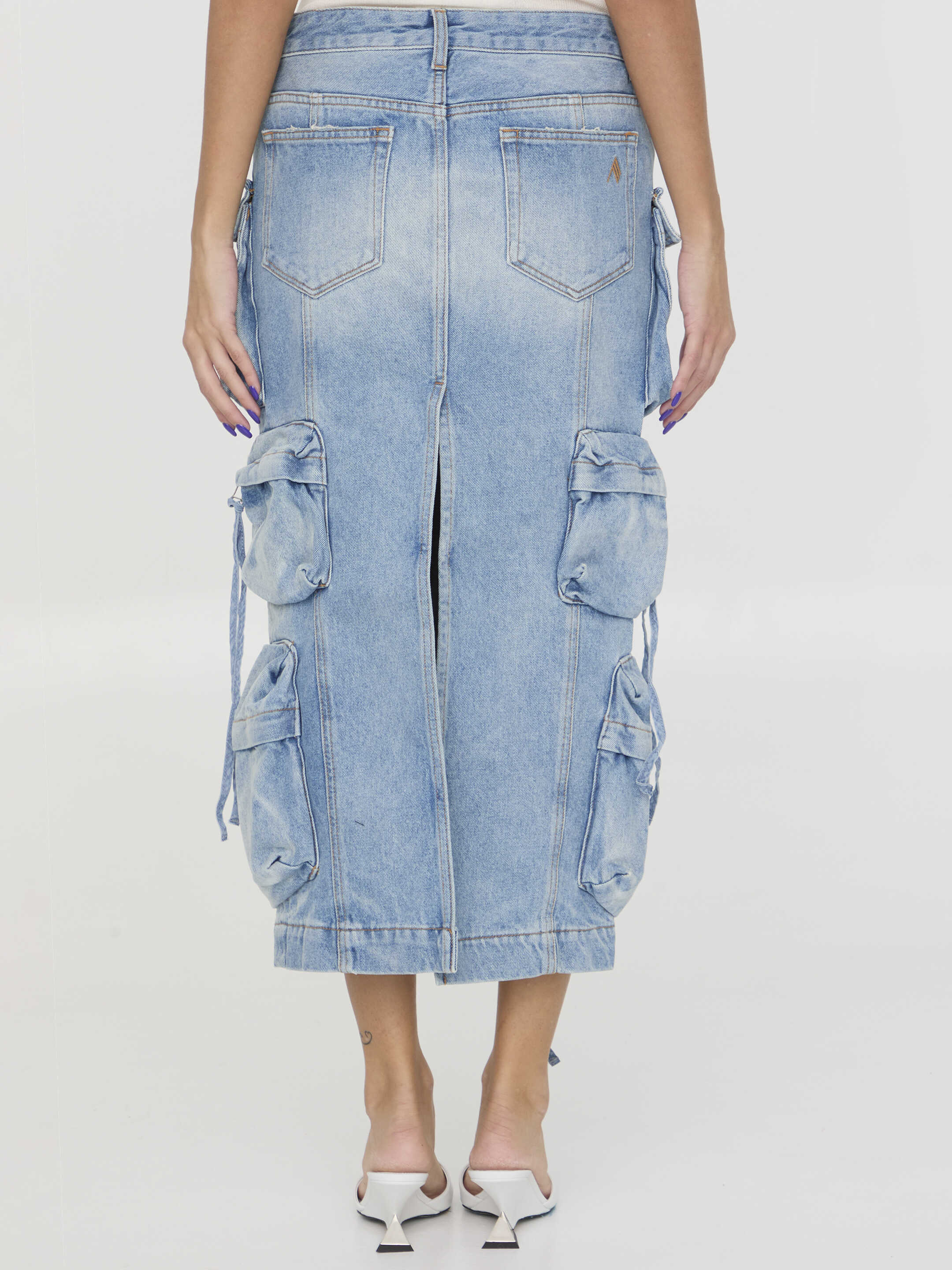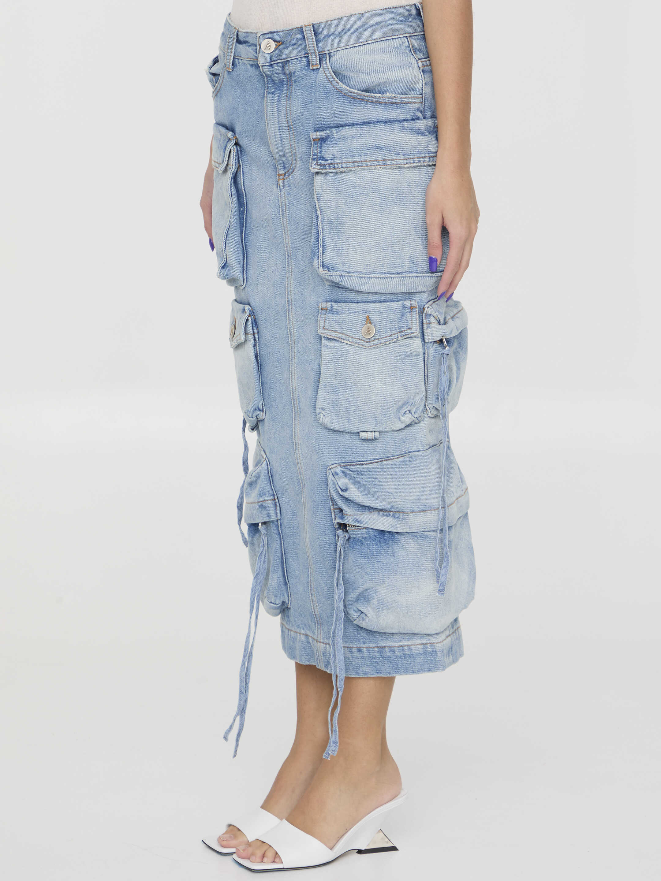 Cargo midi skirt in sky blue cotton denim. It features zip and button closure, multi-pocket design, belt loops and The Attico logo embroidered at the back. Regular fit.